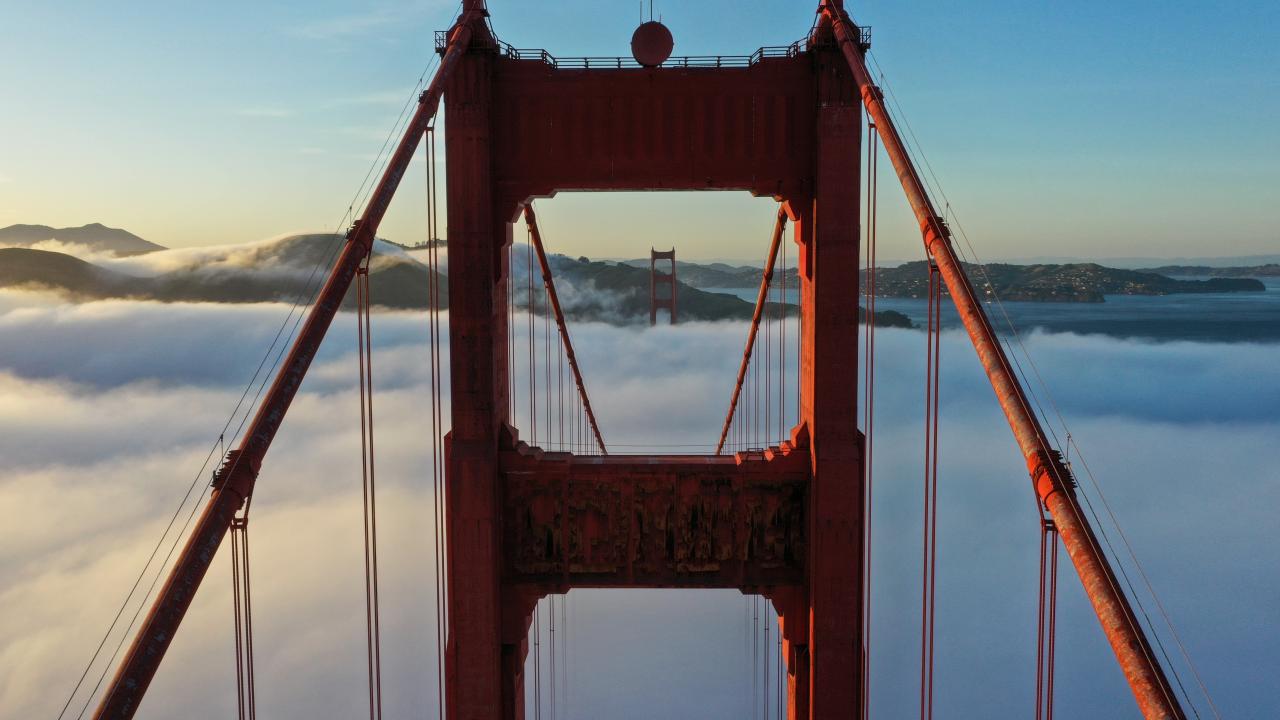 San Francisco Golden Gate Köprüsü üzerinde sis
