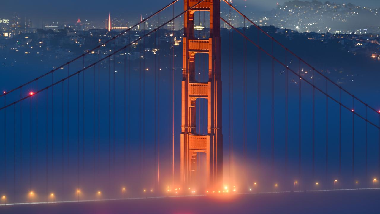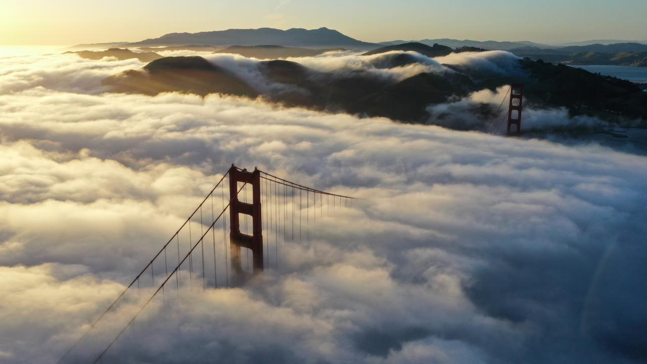 ABD'nin California eyaletinde bulunan San Francisco kentinin simgesi olan Golden Gate Köprüsü üzerinde etkili olan sis, gün batımında güzel görüntüler oluşturdu.