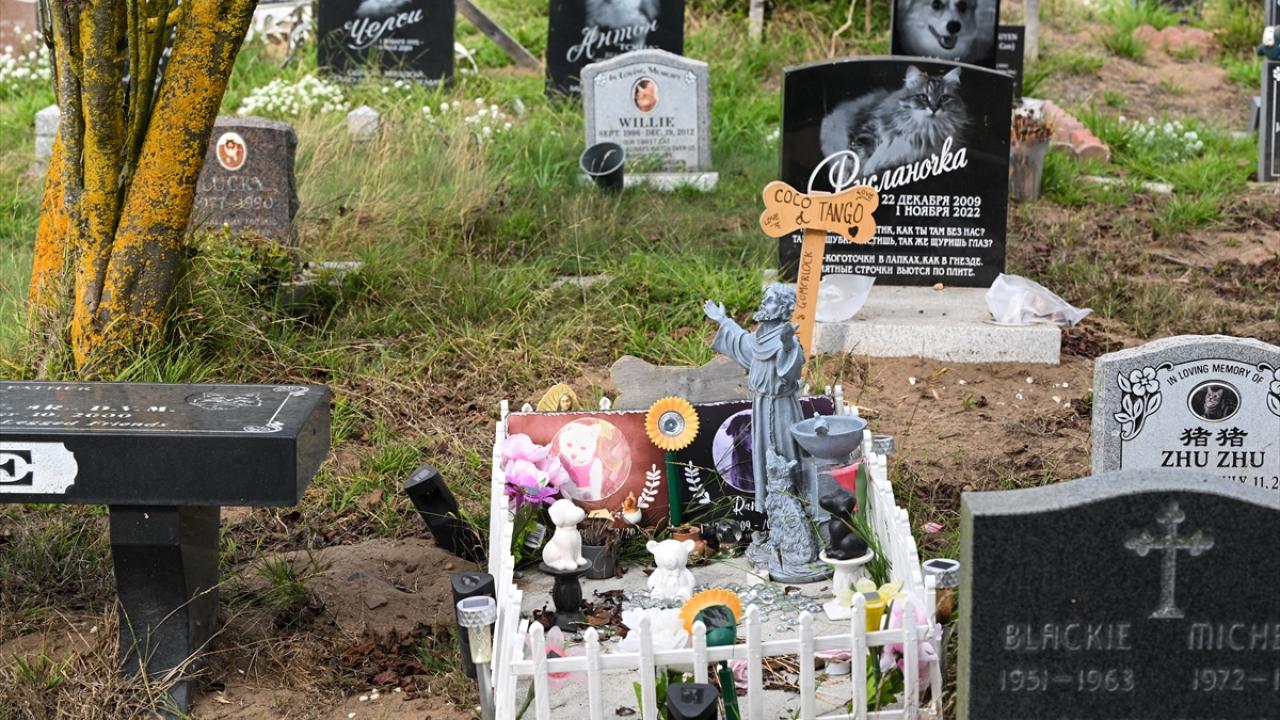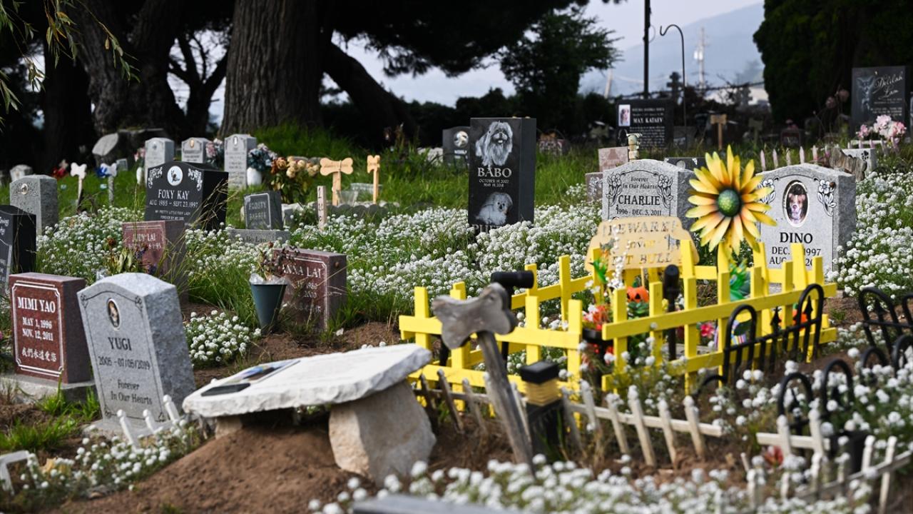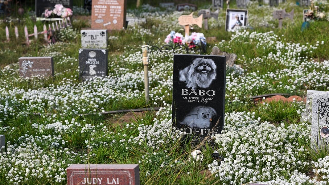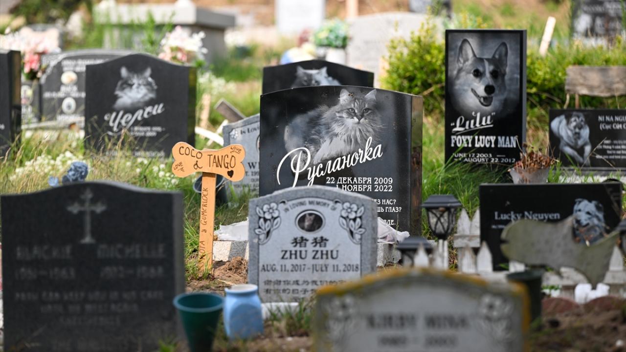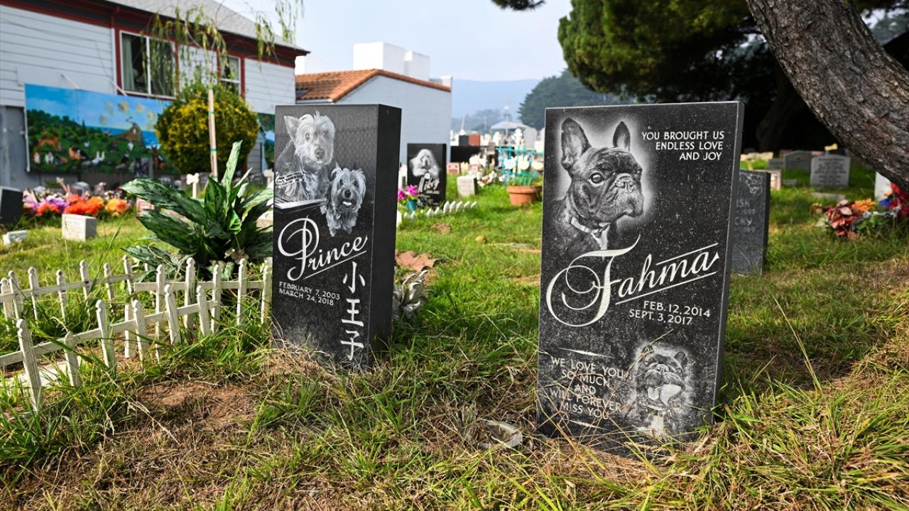 1947 yılında Earl ve Julia Taylor tarafından kurulan, 76 yıldır Kaliforniya eyaletine bağlı Colma kenti sakinlerine, sahiplendikleri evcil hayvanların defin işlemleri için hizmet vermekte olan evcil hayvan mezarlığı “Pet's Rest”, görüntülendi.