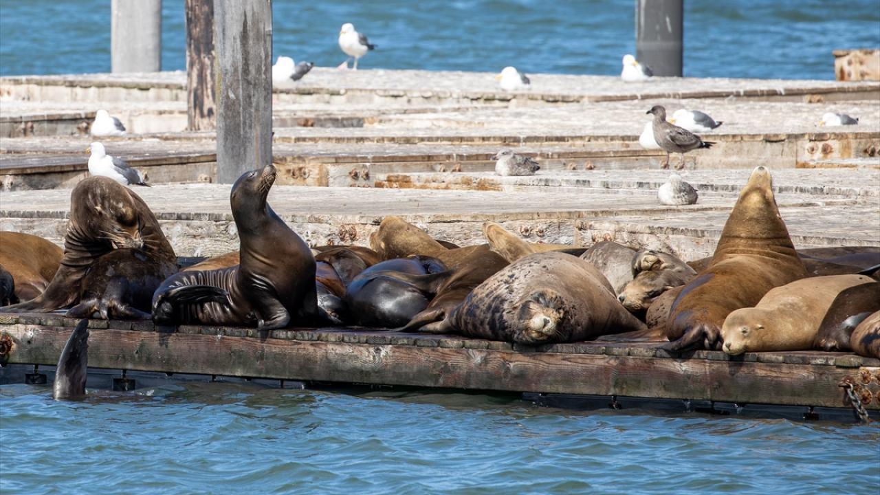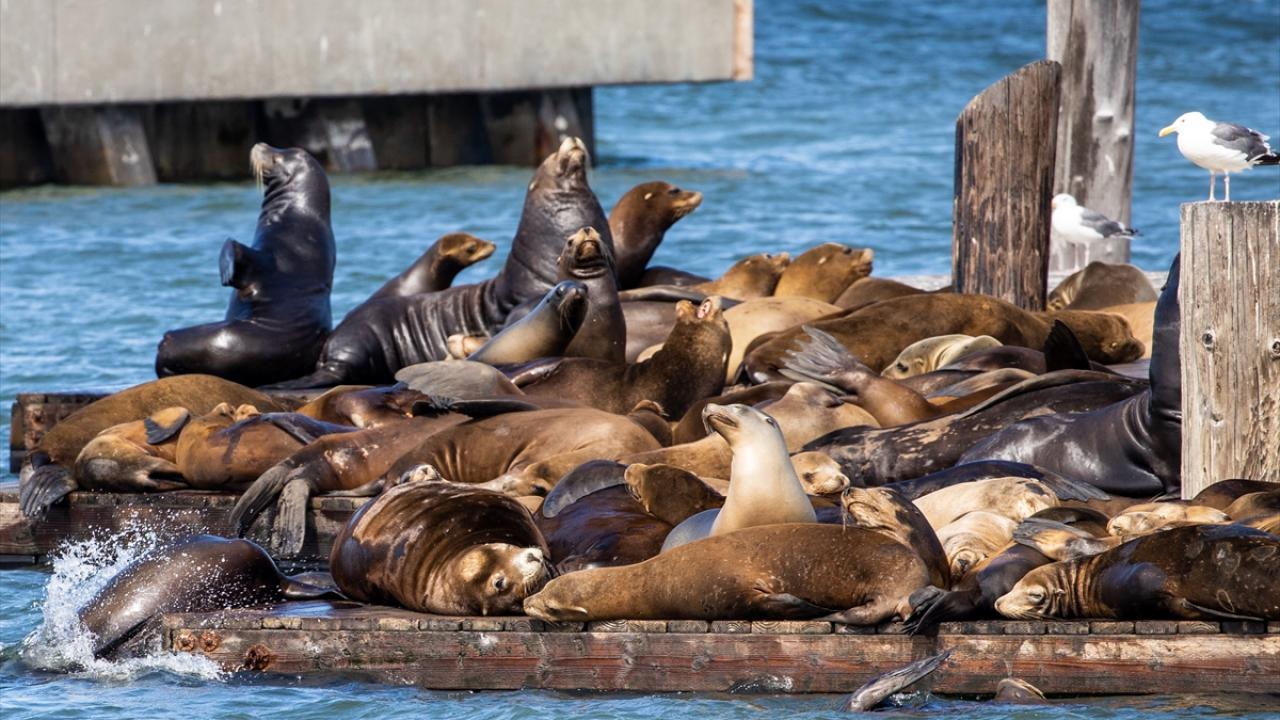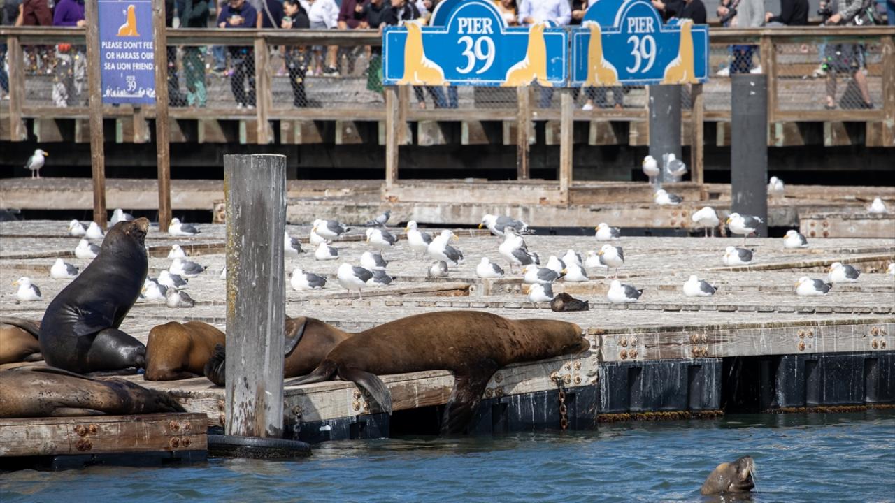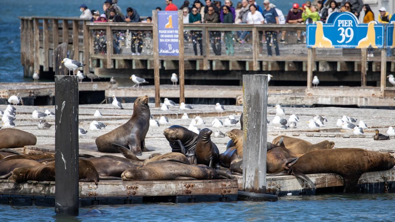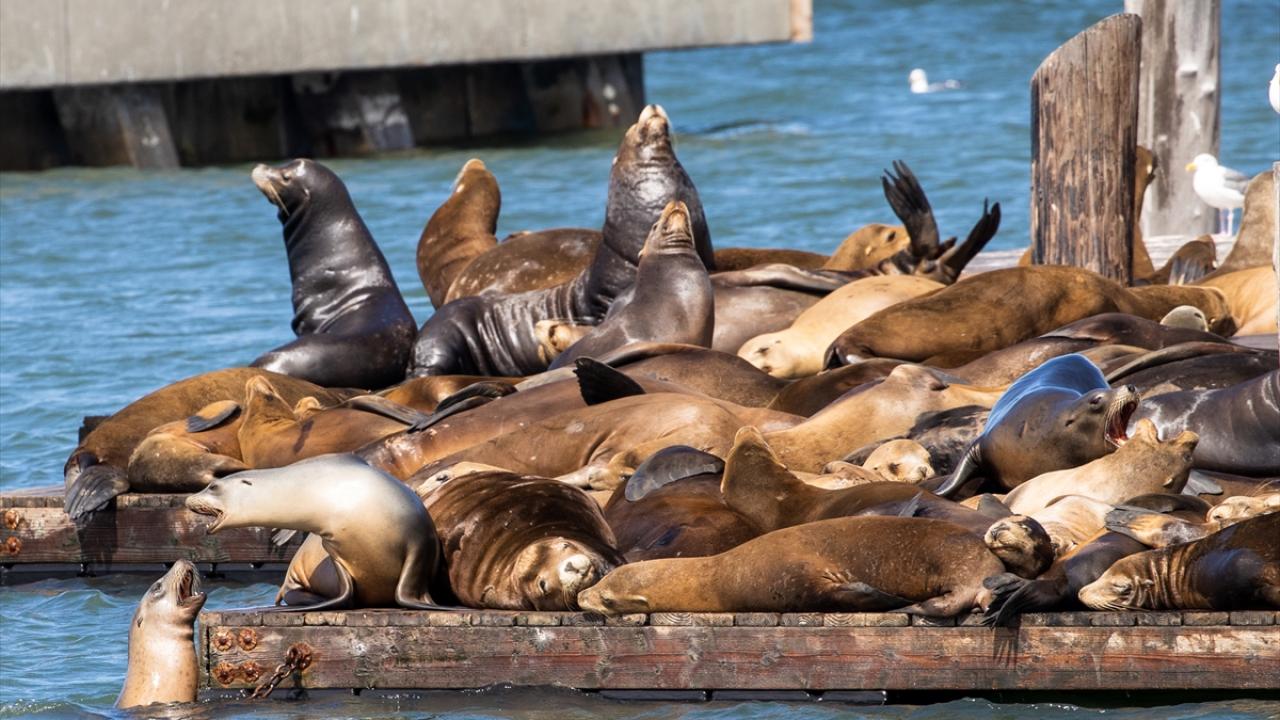 1989'deki Loma Prieta depreminden kısa bir süre sonra 1990 Ocak'ta sürüler halinde ABD'nin California eyaletindeki San Francisco kentinde bulunan PIER 39's West Marina'ya gelerek kamp kurmaya başlayan deniz aslanları, turistlerin ilgisini çekmeye devam ediyor.