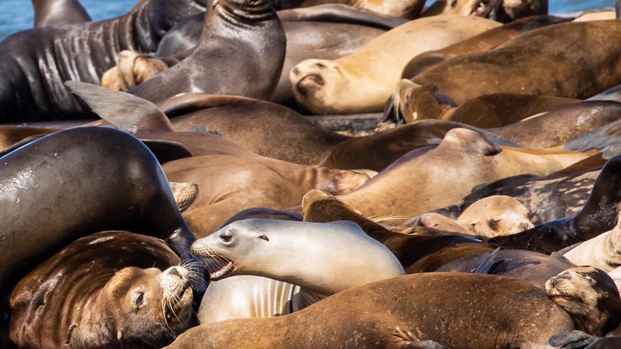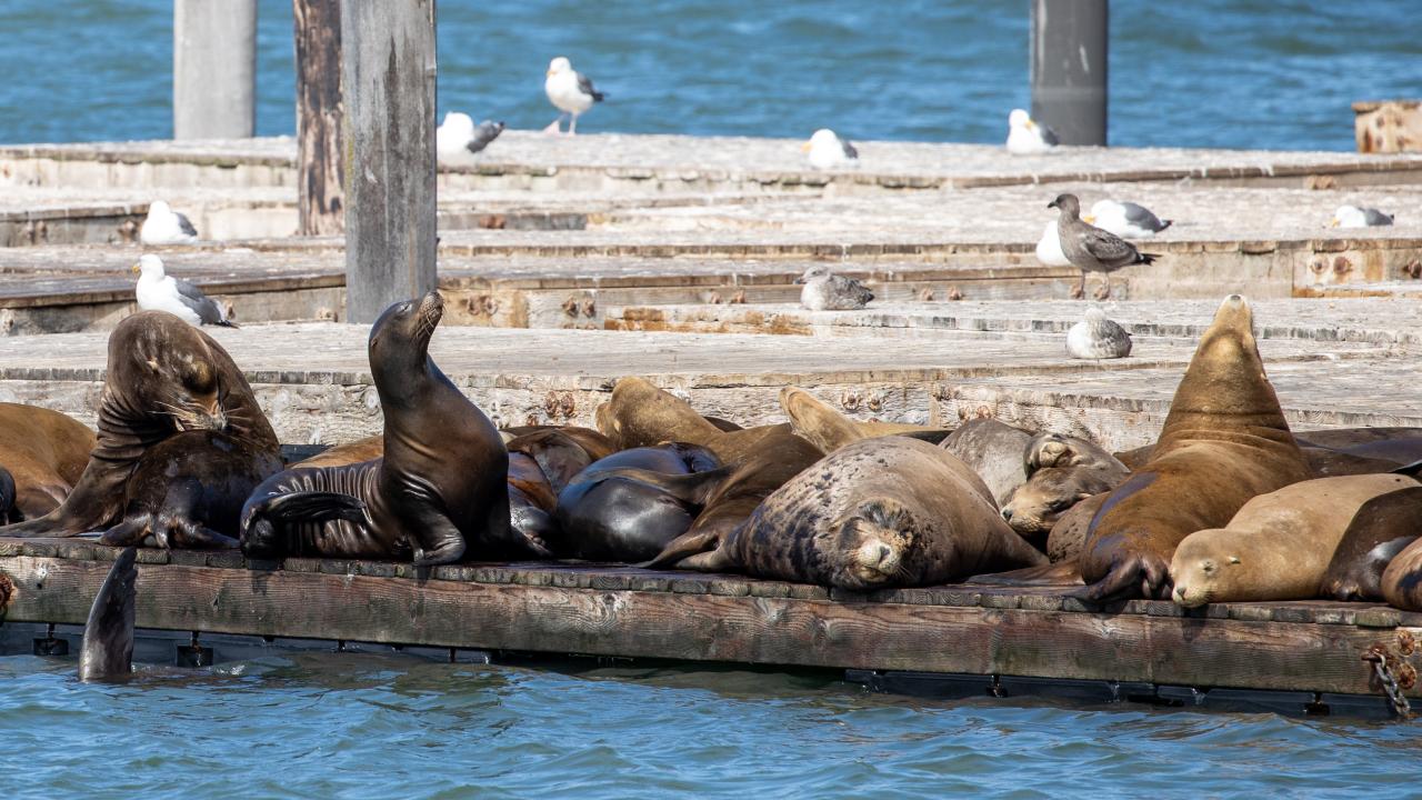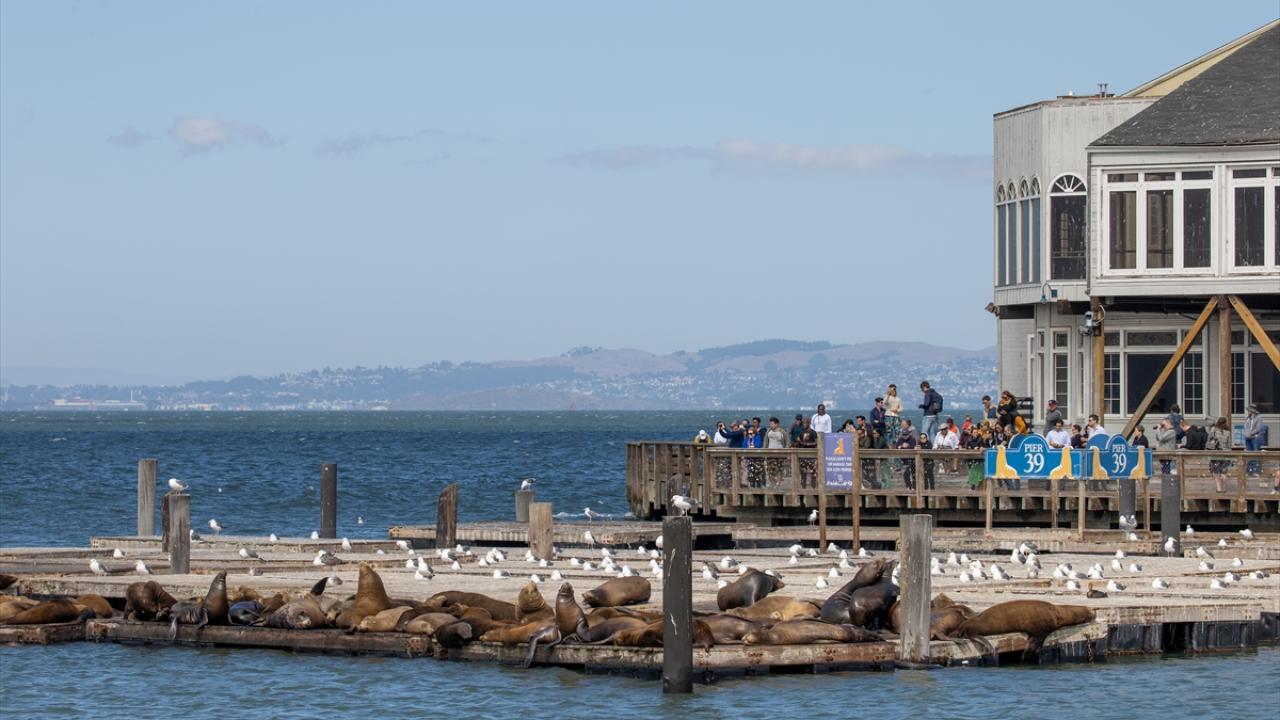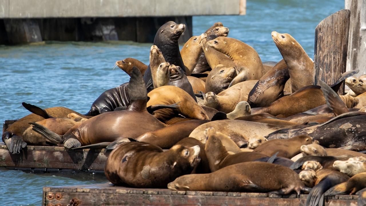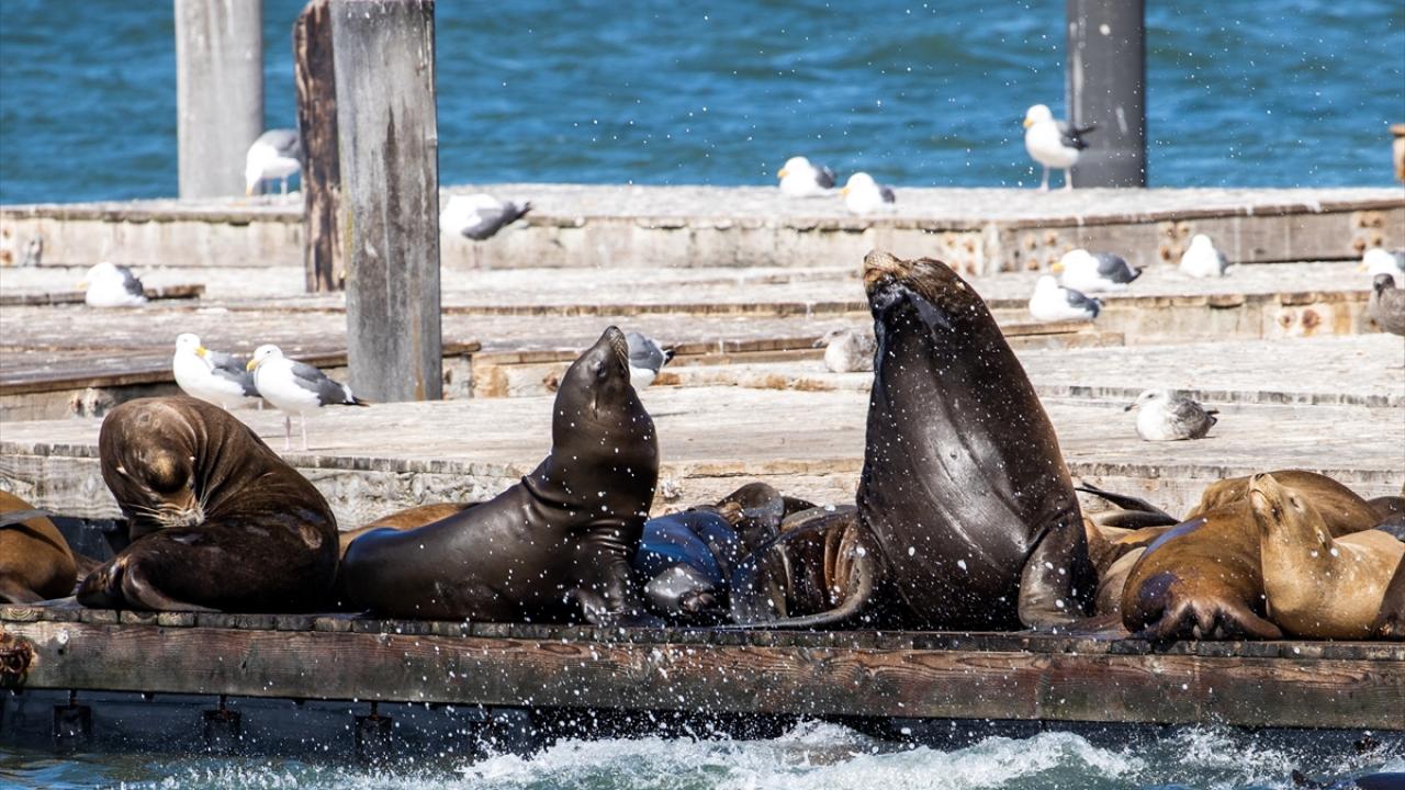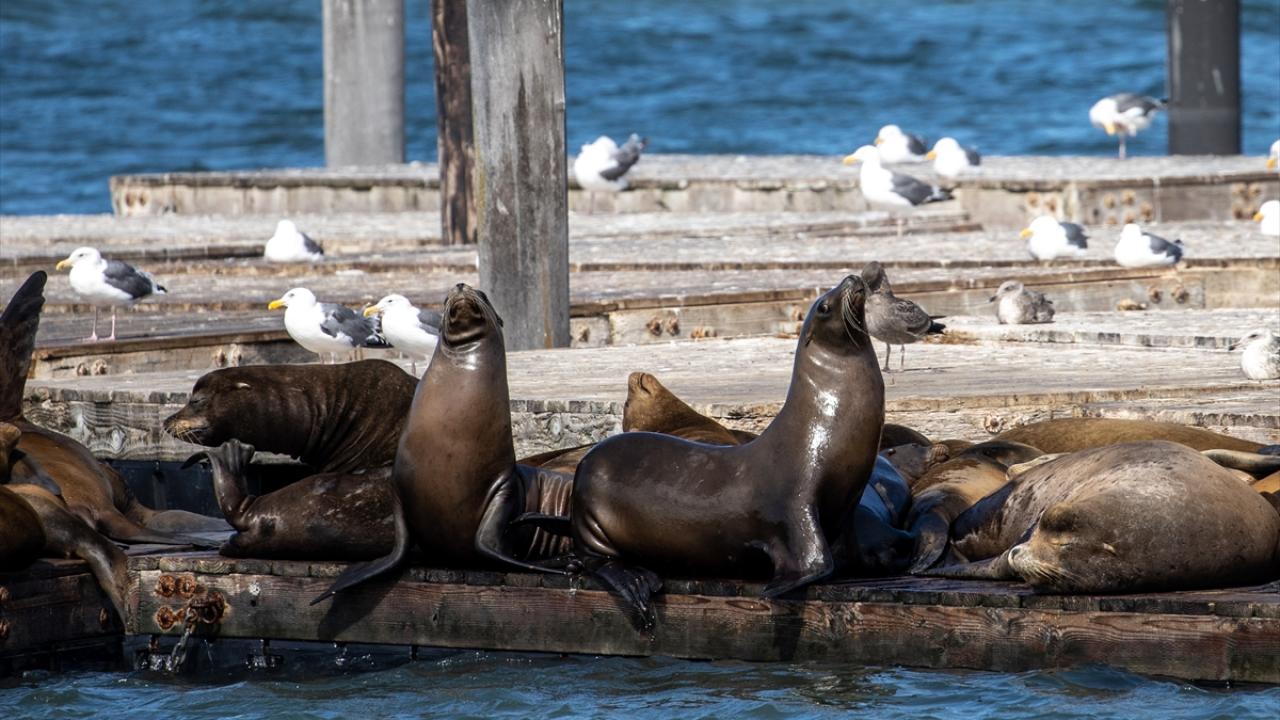 1989'deki Loma Prieta depreminden kısa bir süre sonra 1990 Ocak'ta sürüler halinde ABD'nin California eyaletindeki San Francisco kentinde bulunan PIER 39's West Marina'ya gelerek kamp kurmaya başlayan deniz aslanları, turistlerin ilgisini çekmeye devam ediyor.