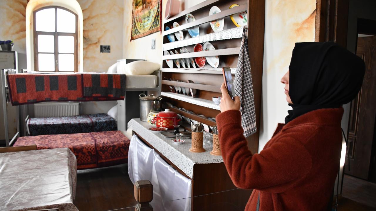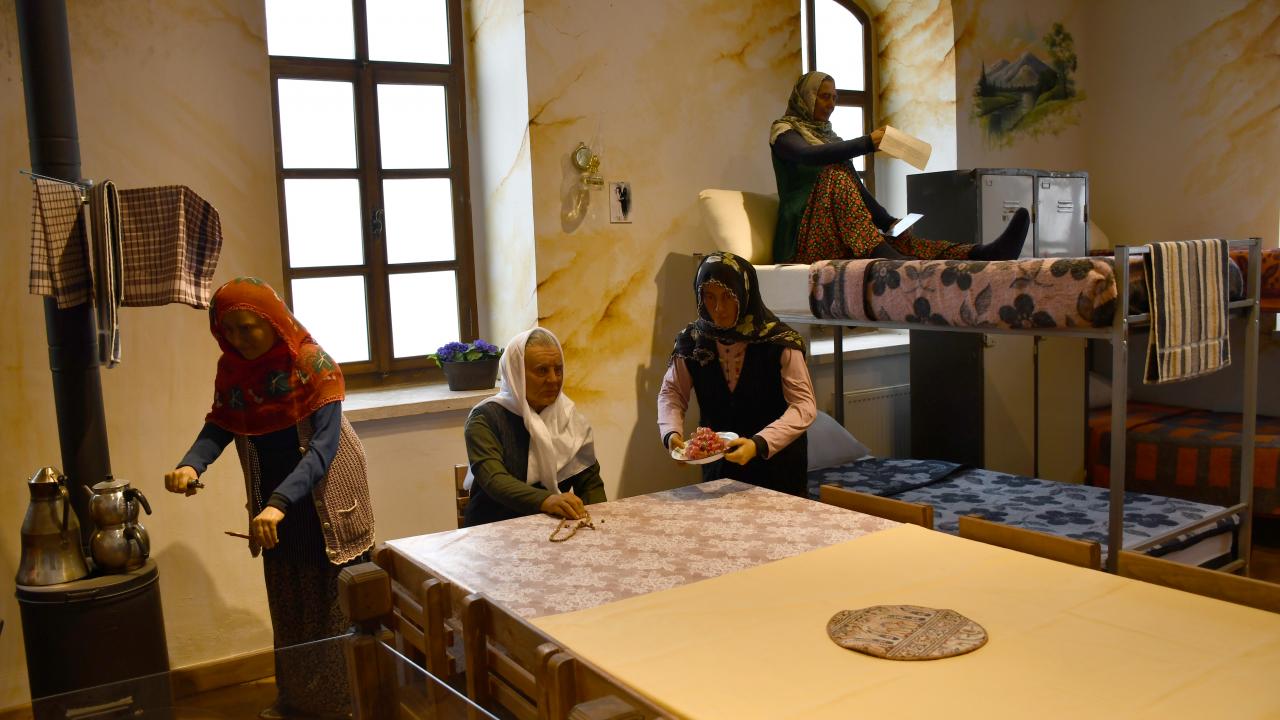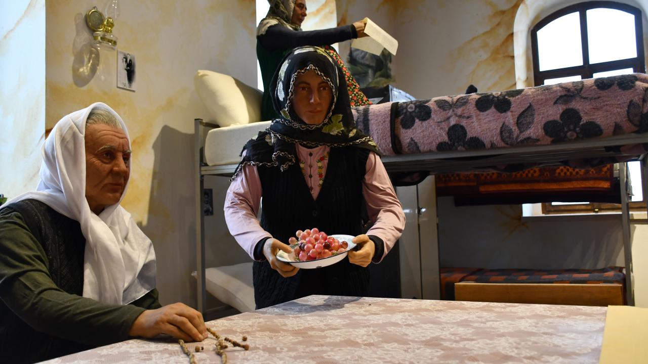 "Müzemizin üst katında 3 ayrı odamız var. Burada öncelikle kronolojik olarak Abdülhamid Han döneminde nasıl kullanıldıysa heykel ve maketlerle canlandırılması var. İkinci odamızda 58 yıl cezaevi olarak kullanıldığı için dönemi anlatan hanımlar koğuşumuz var. Üçüncü odamızda ise Sivas`ın kültürü, etnografik objeleri nelerdir, bunlar sergilenip teşhir ediliyor."