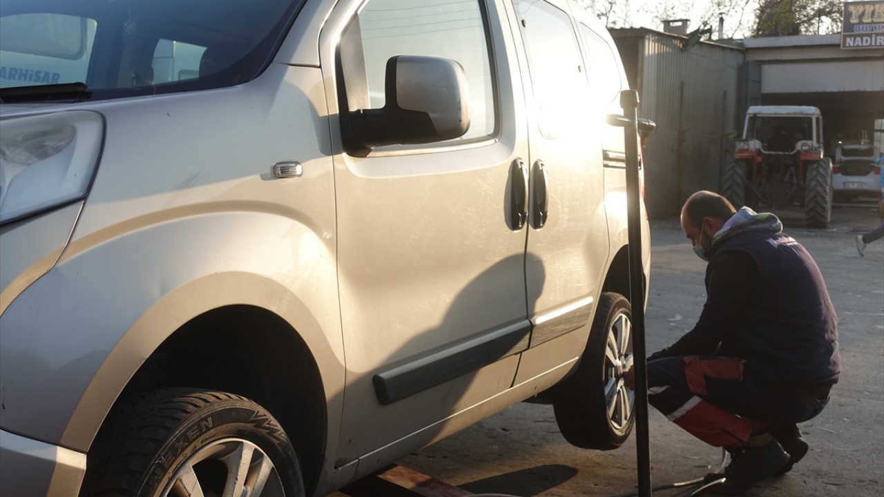 Bölgede kış şartlarının oldukça ağır geçtiğini hatırlatan El, günde yaklaşık 40 - 50 aracın lastik değiştirdiklerini belirtti.
