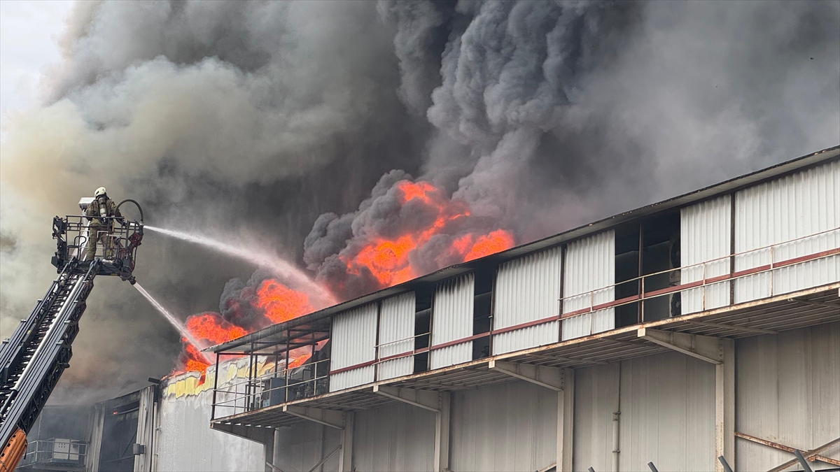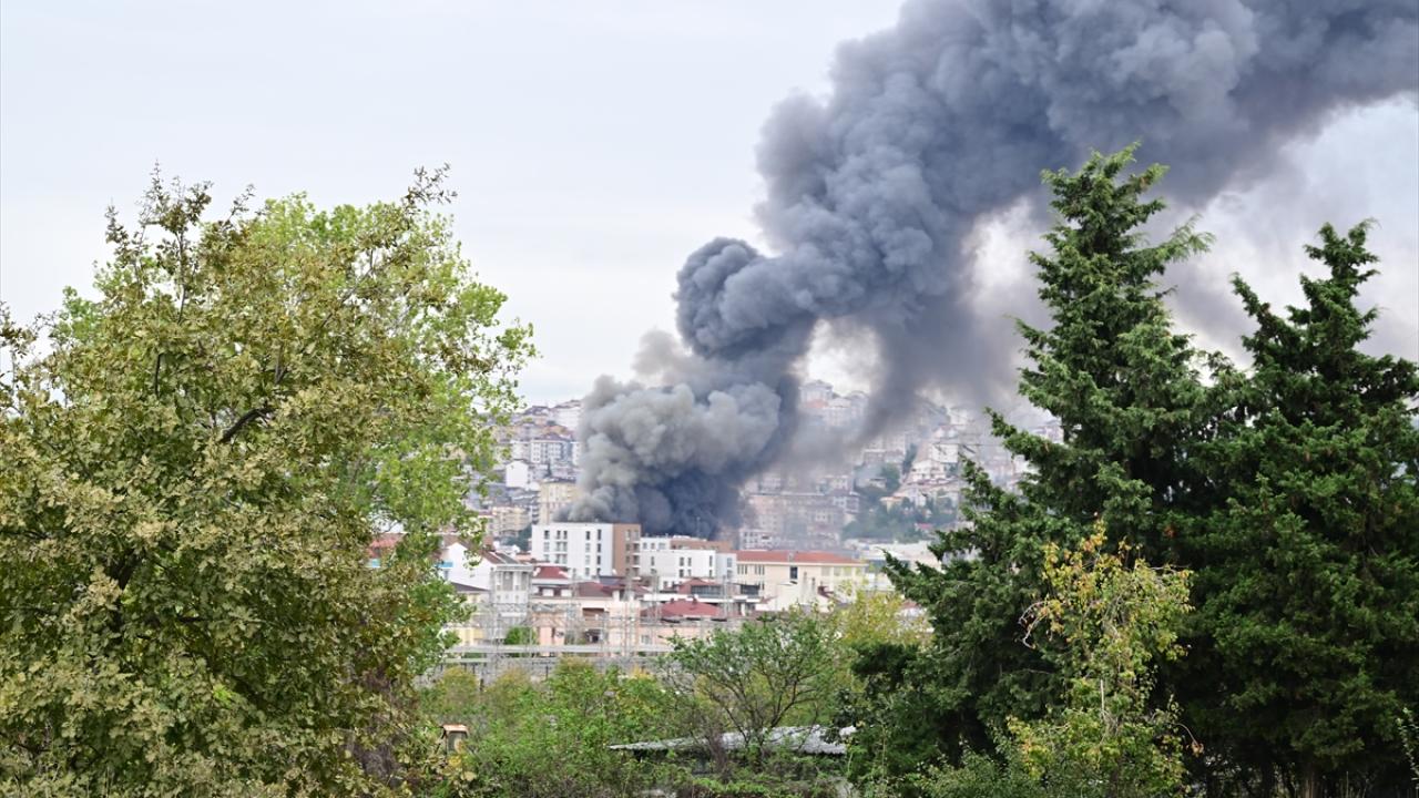 Yoğun dumana neden olan yangına ekiplerin müdahalesi sürüyor.