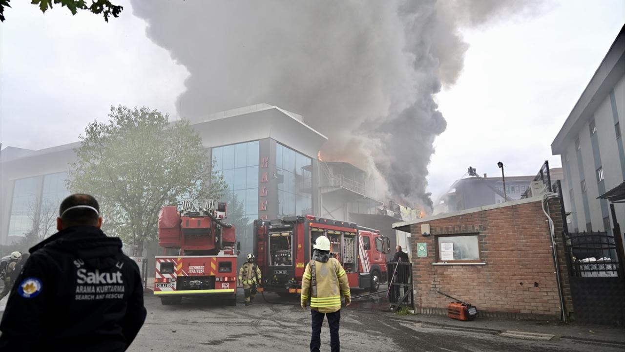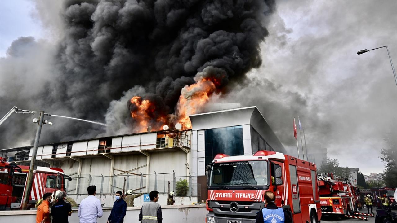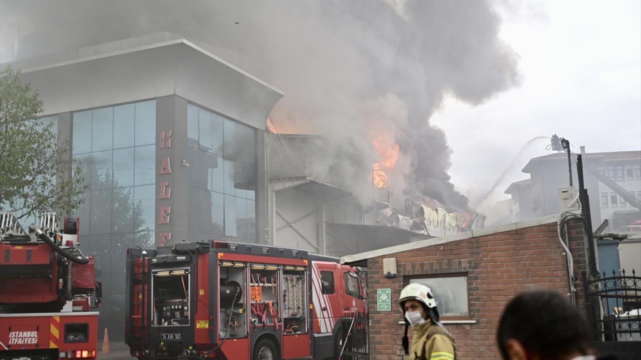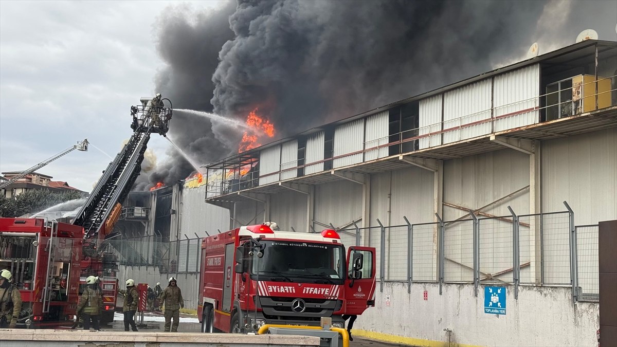 İstanbul Sancaktepe'de bir iş yerinde çıkan yangın itfaiye ekiplerince söndürülmeye çalışılıyor.
