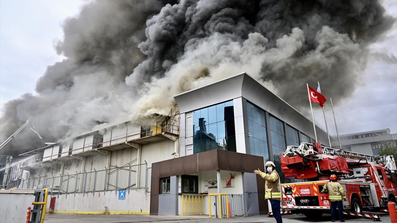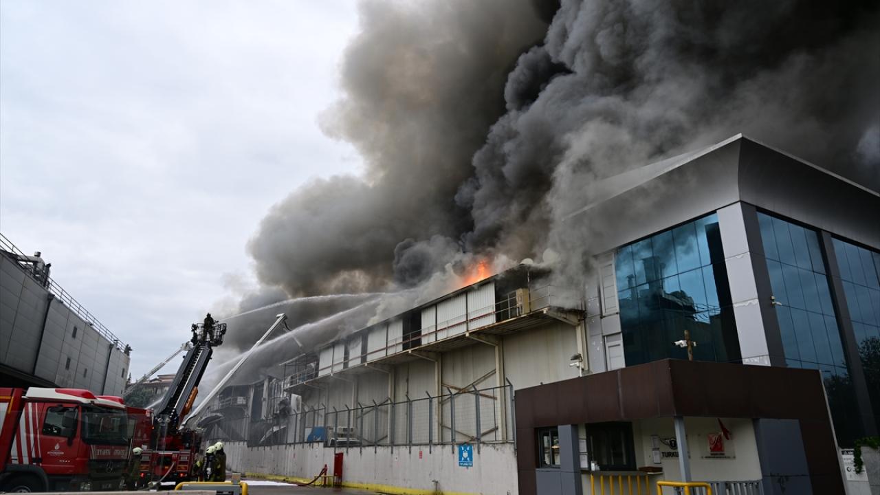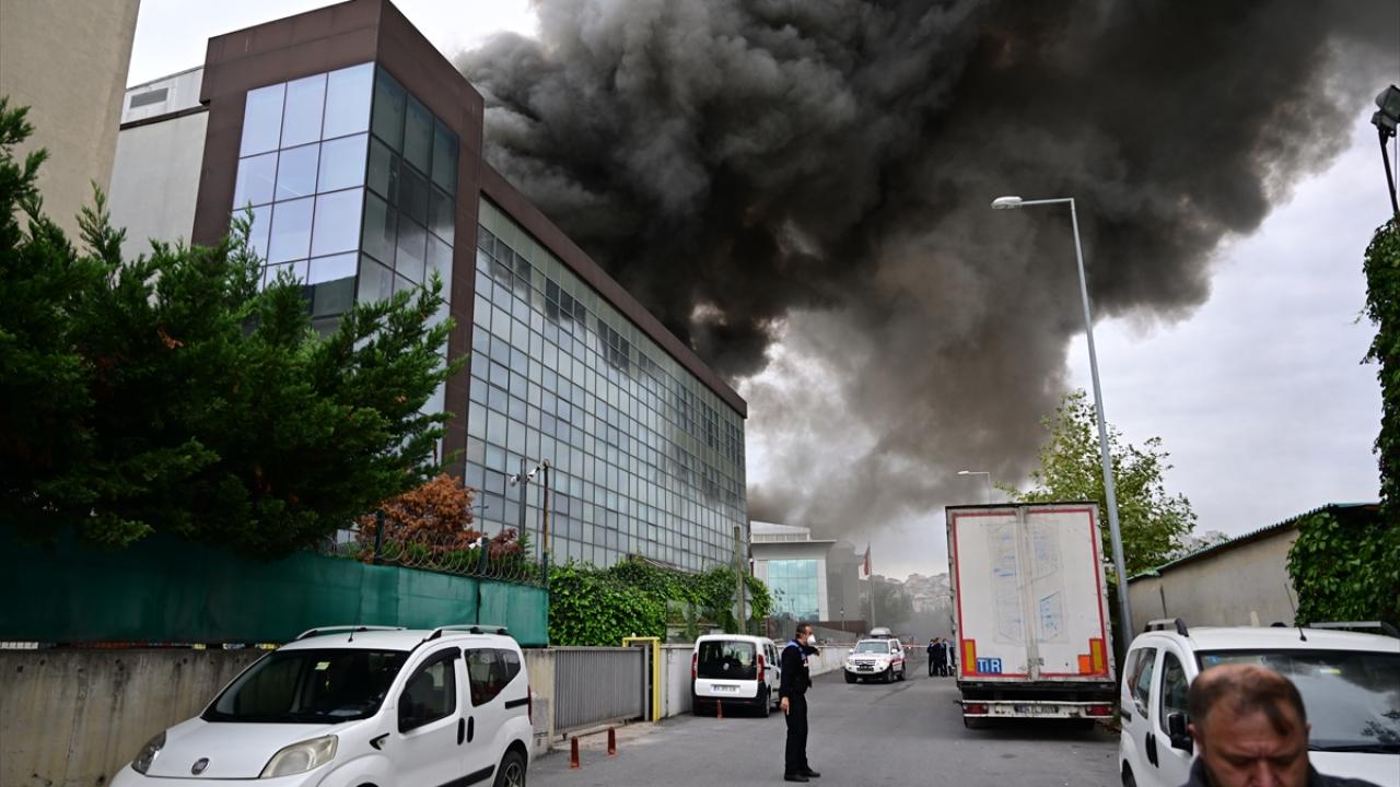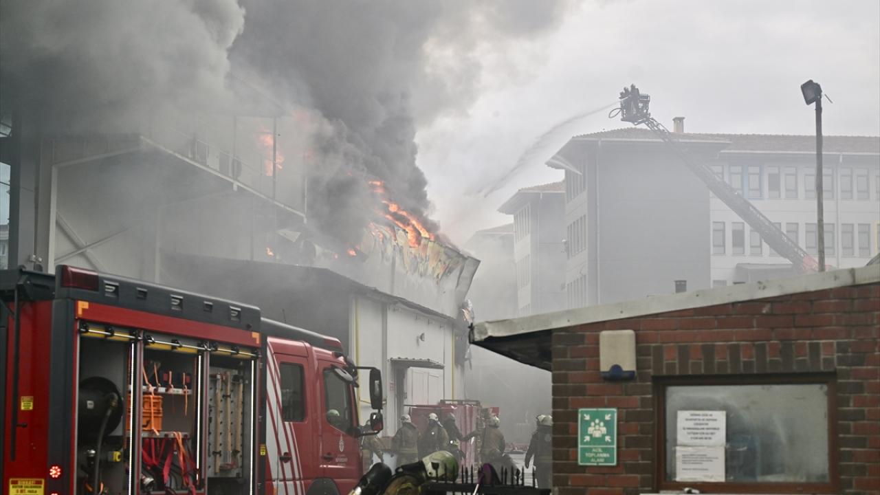 İstanbul Sancaktepe'de bir iş yerinde çıkan yangın itfaiye ekiplerince söndürülmeye çalışılıyor.