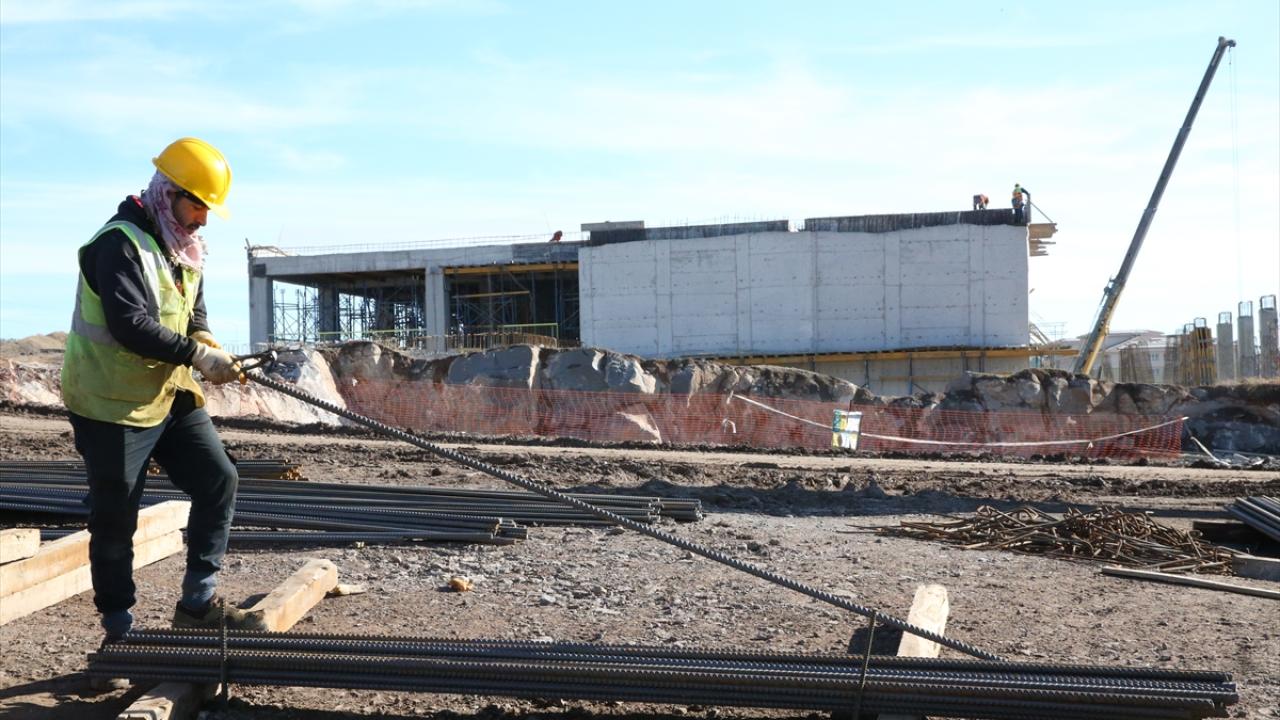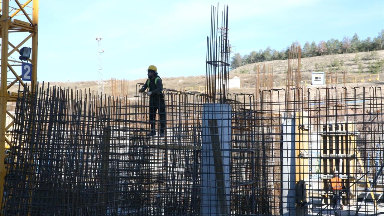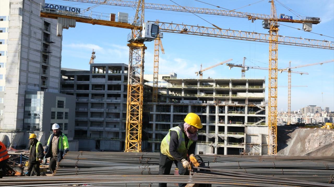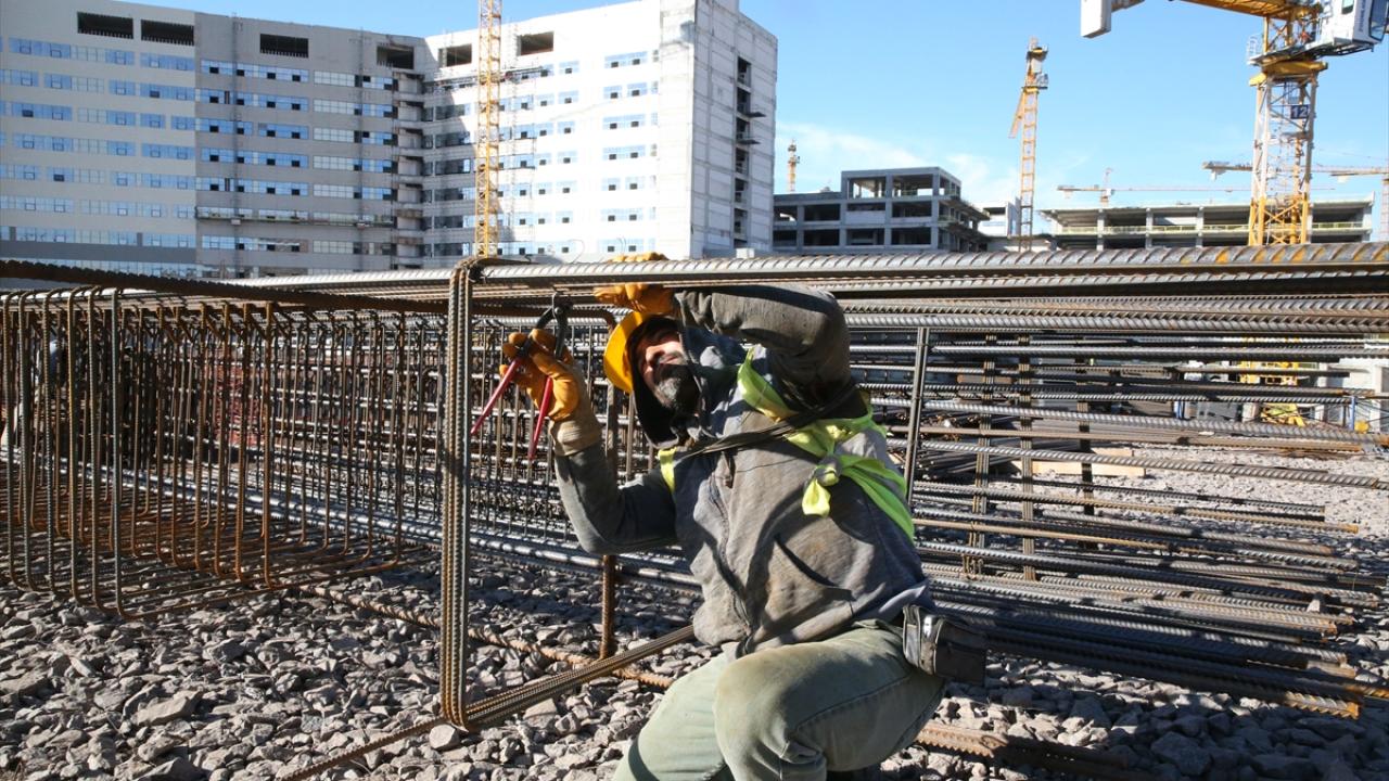 Hastanenin inşaat sahasında 1300 işçi, 24 saat vardiya sistemiyle yapının bir an önce hizmete girmesi için ter döküyor.