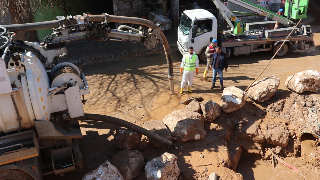 Selden etkilenen Mance ve Karakoyunlu mahallelerinde başlatılan çamur temizleme çalışmaları sürüyor.