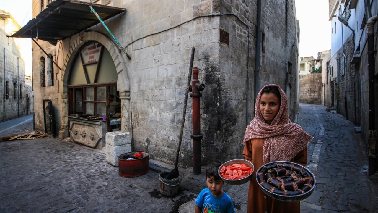 Türkiye`nin yemek kültürüyle adından söz ettiren kentlerinden Şanlıurfa`da, evlerde et ve sebzeyle hazırlanan tepsi yemekleri, pişirilmek üzere hemen hemen her sokakta bulunan taş fırınlara götürülüyor.