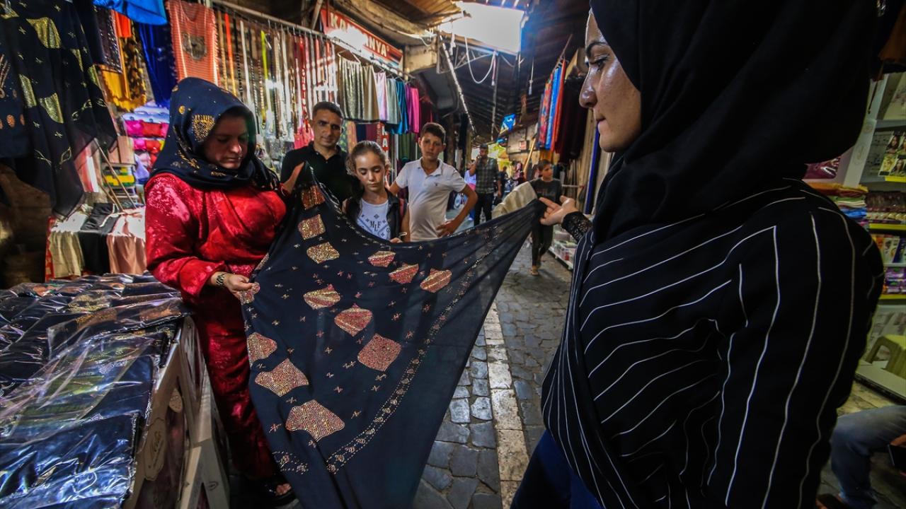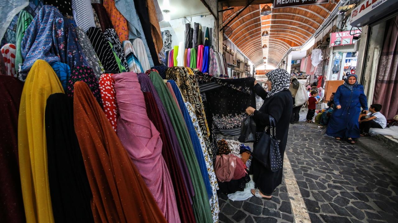 Şanlıurfa`nın merkezindeki Aşağı Çarşı`da bulunan kumaşçılarda, kadınların kimi zaman günlük yaşamda kimi zaman da düğünlerde ve özel günlerde giyindiği yöreye özgü rengarenk kıyafetlerin kumaşları satılıyor.