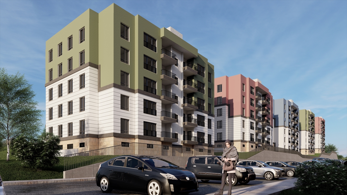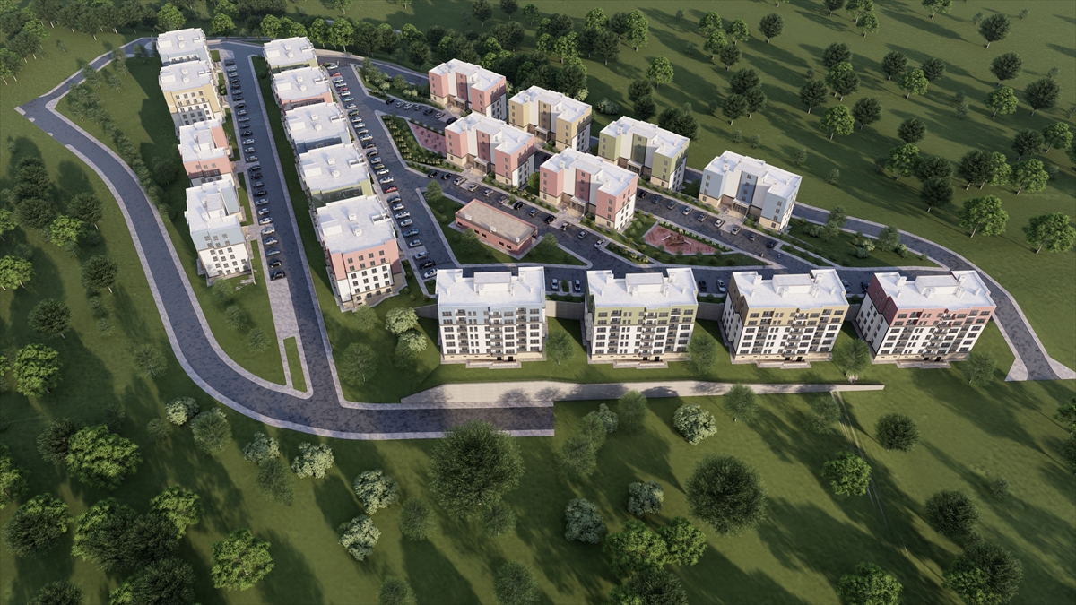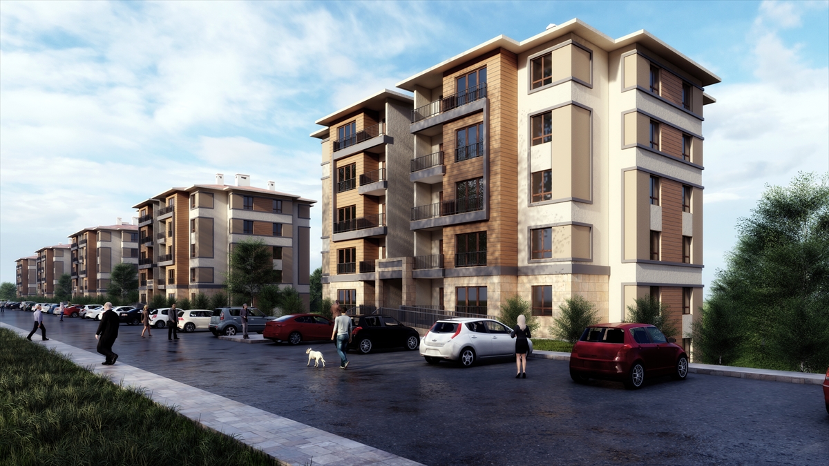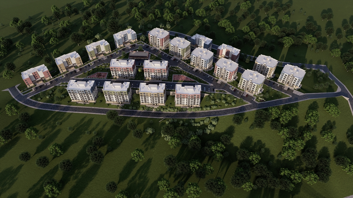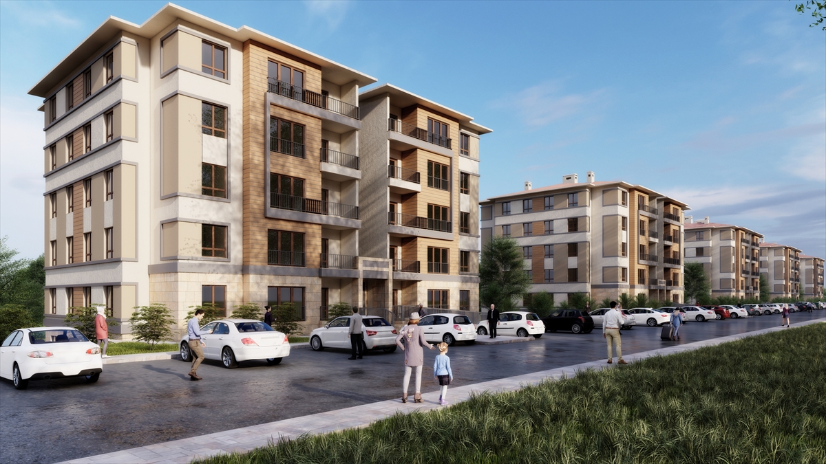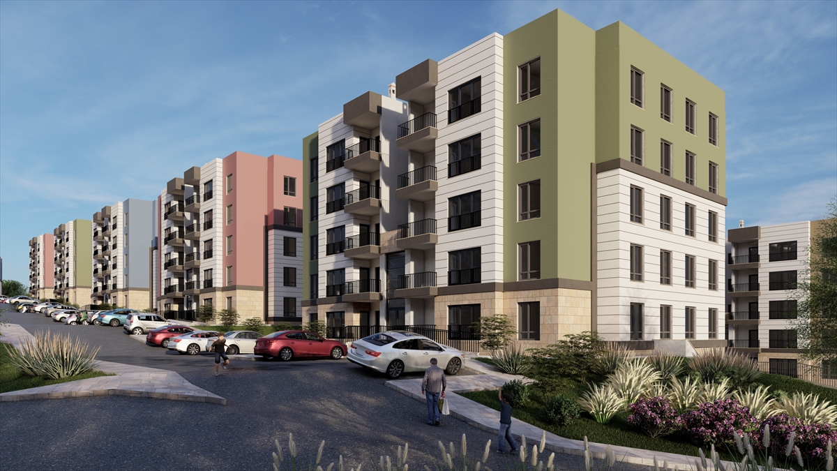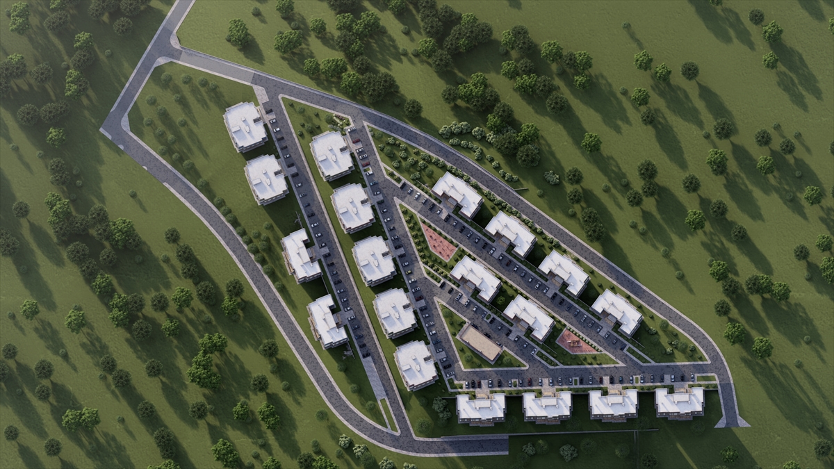 Görüntülerde, konutların yanı sıra çocuk oyun parkları, spor ve dinlenme gibi sosyal donatı alanlarının da bulunduğu bir yaşam alanı oluşturulacağı da aktarıldı.
