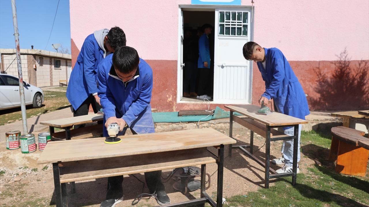 Elektrik ve mobilya atölyelerinde edindikleri bilgi ve becerileri sahaya taşıyan öğrenciler, yıpranan sıra ve masaları onarıyor, elektrik tesisatındaki arızaları gideriyor.
