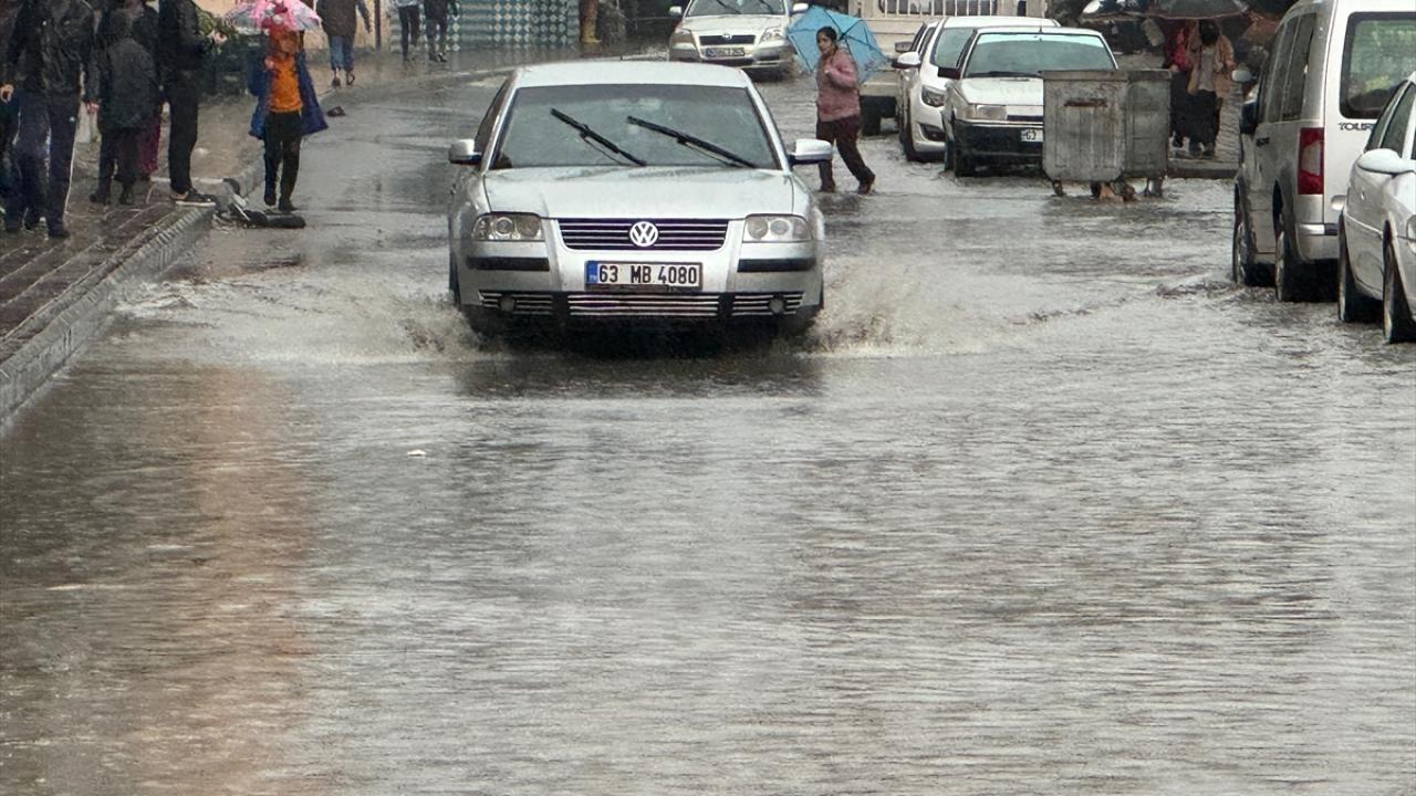 Şanlıurfa`da öğlen saatlerinde etkili olan yağmur, sağanağa dönüştü.