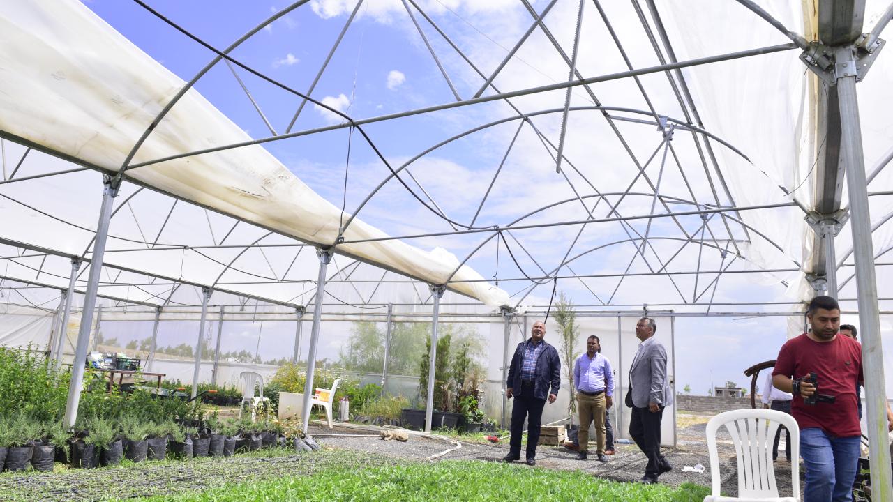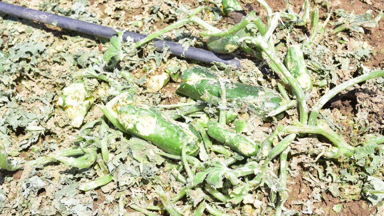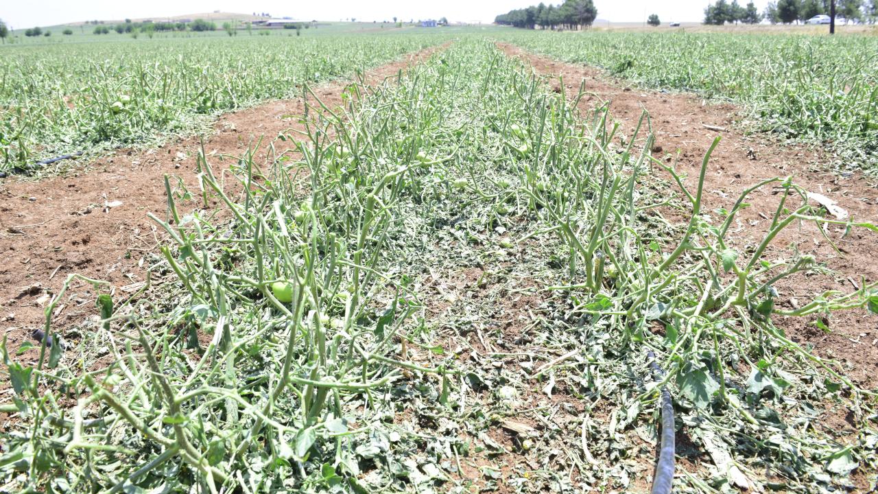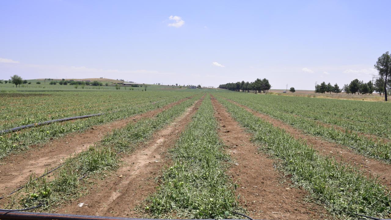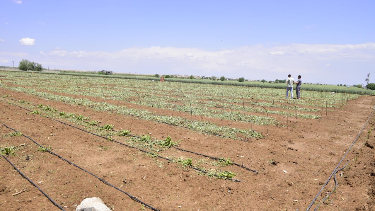 Şanlıurfa'nın Ceylanpınar ilçesinde dün etkili olan sağanak ve dolu, Özbek Mahallesi'ndeki sera ve tarlalara zarar verdi.