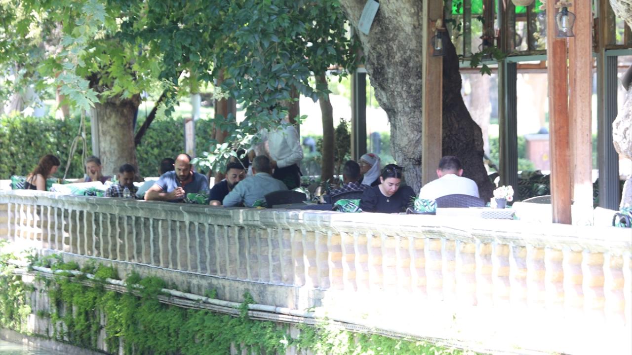 Yöre insanı serinlemek için tarihi Balıklıgöl çevresindeki parkları ve yeşil alanları tercih etti.