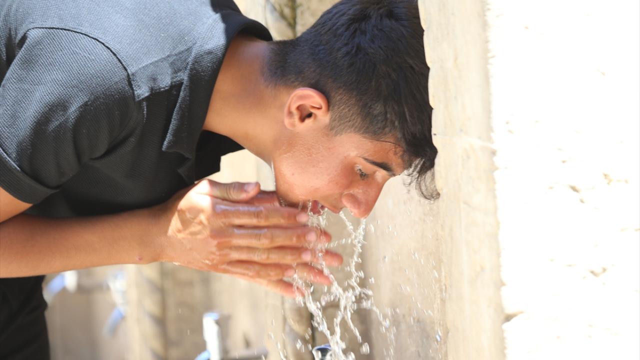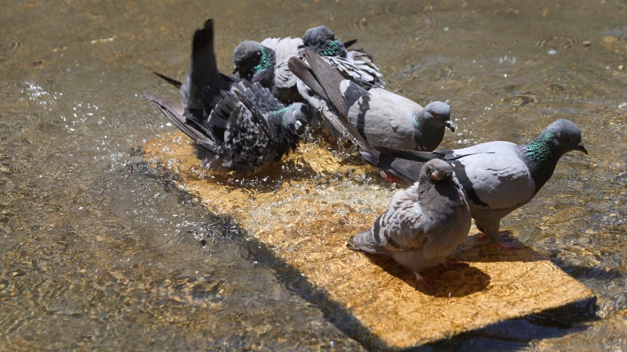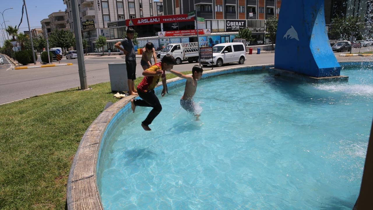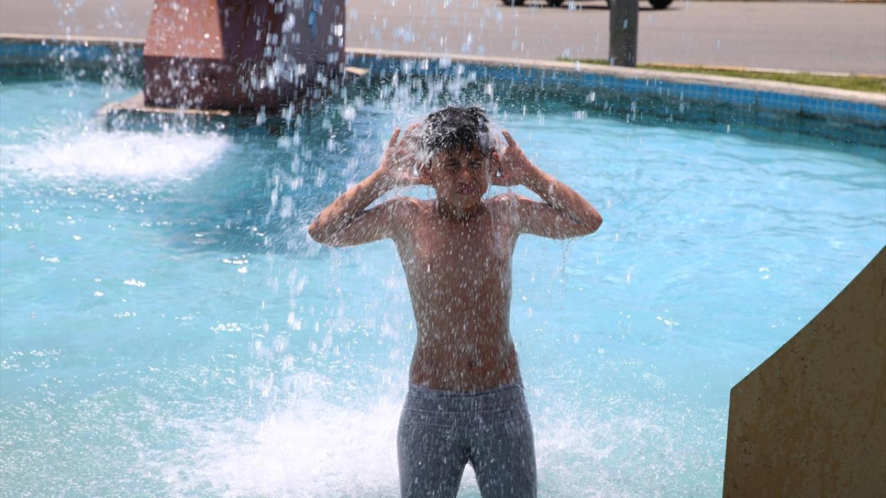 Kentteki bazı çocukların ise süs havuzlarında serinlemeye çalıştığı görüldü.