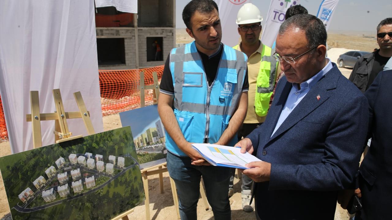 Bakan Bozdağ, TOKİ tarafından depremzedeler için Eyyübiye ilçesinde yapımına başlanan 19 bloklu 366 konutun şantiye alanında incelemelerde bulundu.