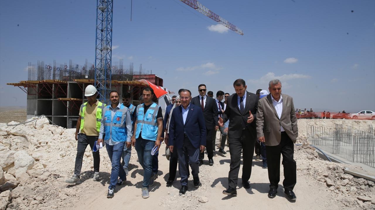 Adalet Bakanı Bekir Bozdağ, TOKİ tarafından depremzedeler için Eyyübiye ilçesinde yapımına başlanan 19 bloklu 366 konutun şantiye alanında incelemelerde bulundu.