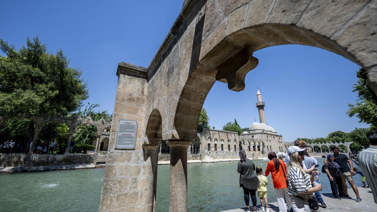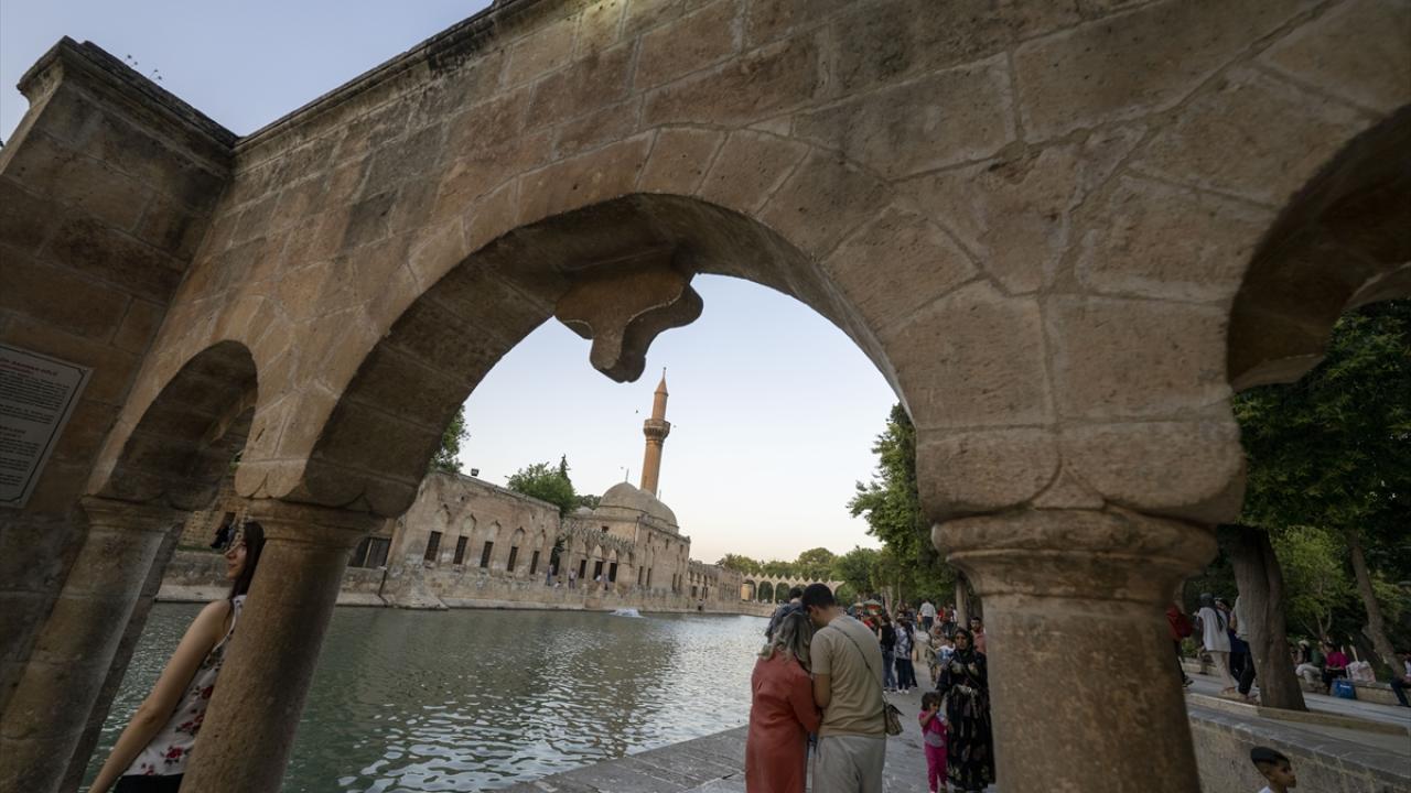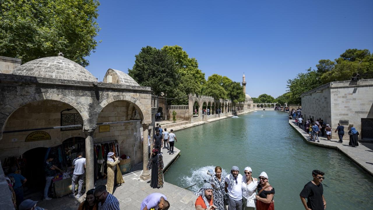 Tarihi alanı gezen turistler, göldeki kutsal kabul edilen balıklara yem atıyor, fotoğraf çektirip, yerleşkedeki mekanları ziyaret ediyor. Buradan Urfa Kalesi`ne de çıkan konuklar, tarihi ve yeni yapıların iç içe olduğu kenti kuş bakışı seyretme imkanı buluyor.