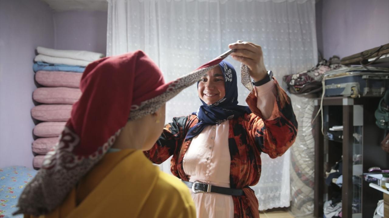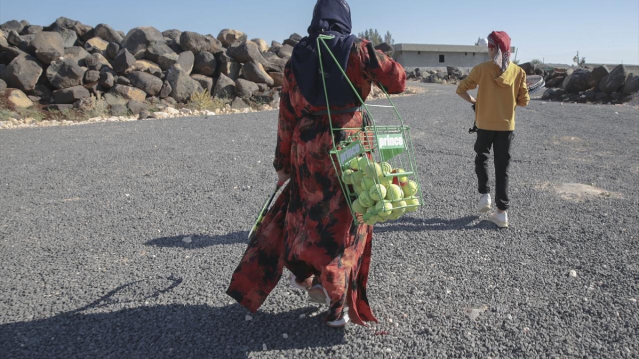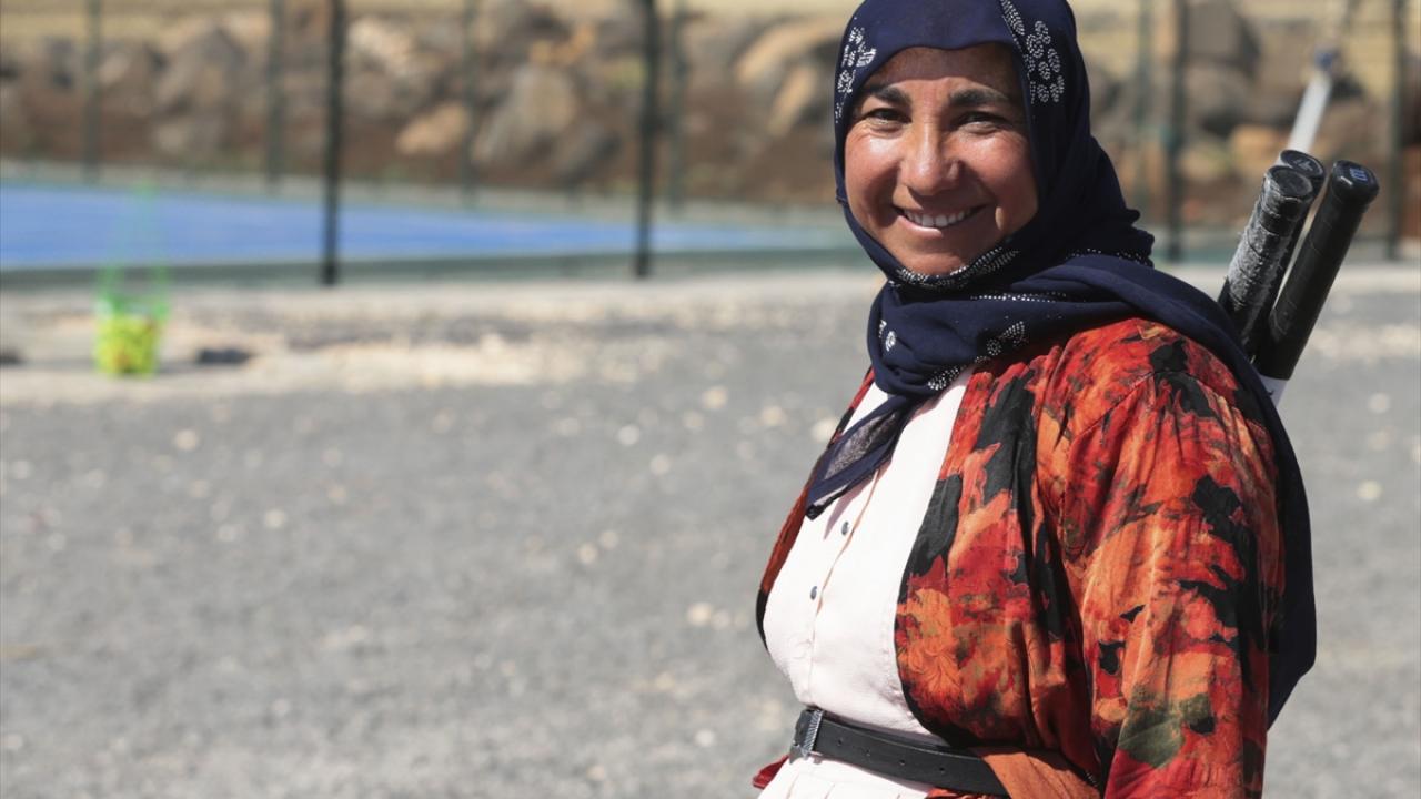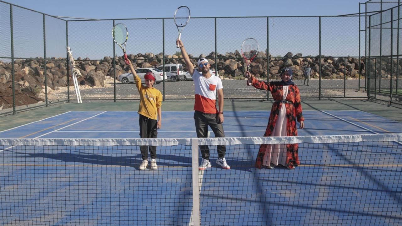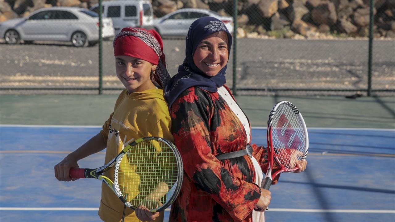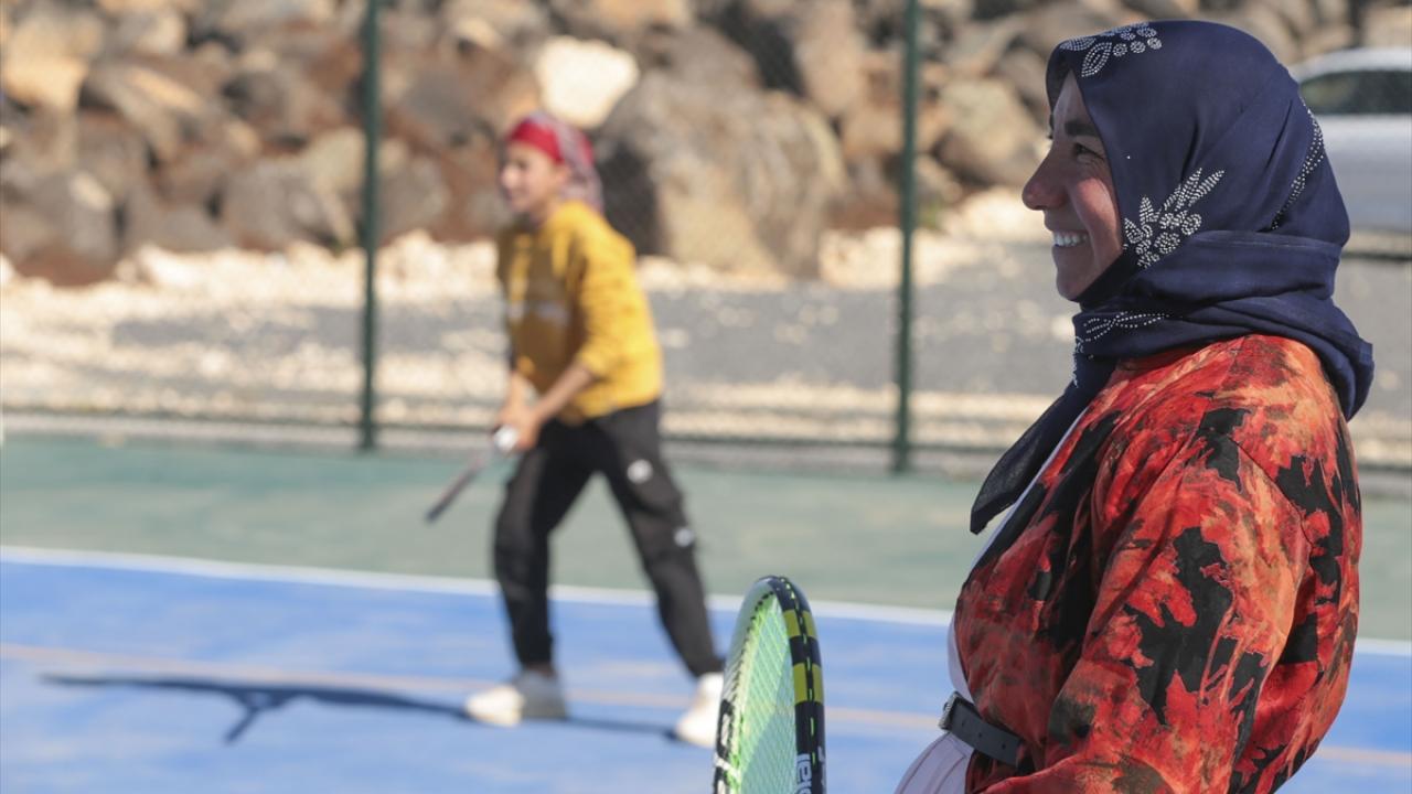 Şanlıurfalı üç çocuk annesi Fatma Karakeçi, kızı için tenis kortuna çıktı
