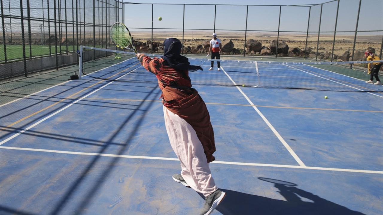 Gençlik ve Spor Bakanı Mehmet Muharrem Kasapoğlu'nun talimatıyla Şanlıurfa'daki Sarıbal Köyüne yapılan tenis kortuna ilgi artarken, yöresel kıyafetleriyle kadınlar da bu spora ilgi göstermeye başladı.