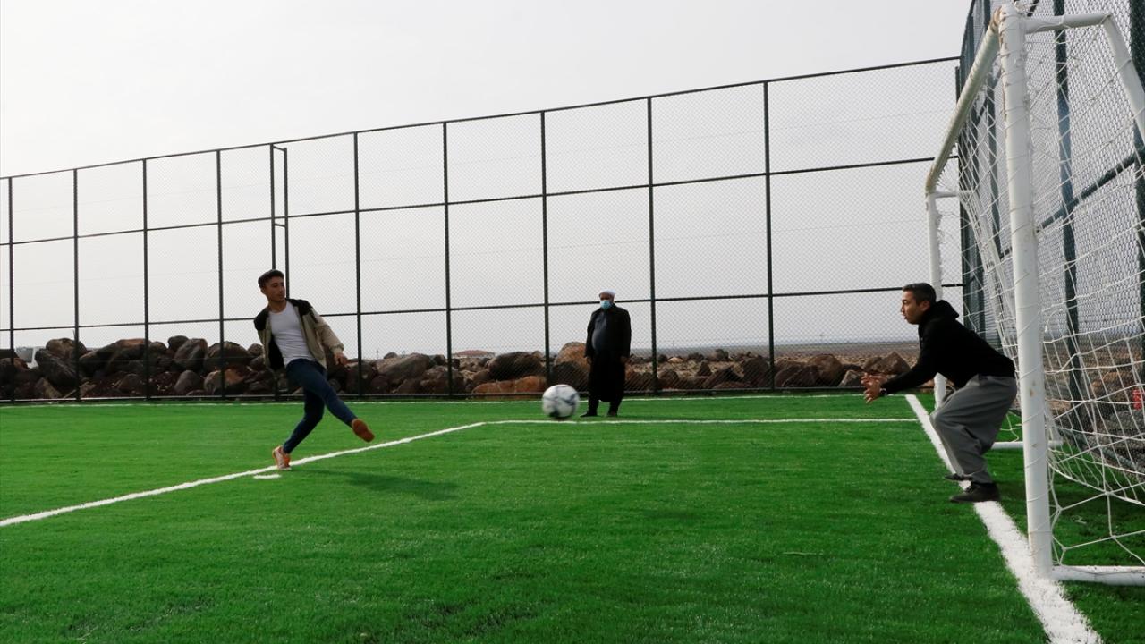 Şanlıurfa'da kendi imkanlarıyla yaptıkları toprak kortta yöresel kıyafetlerle raket sallayan köylüler, inşaatı bitme aşamasına gelen tenis kortuna ayak basmak için sabırsızlanıyor.