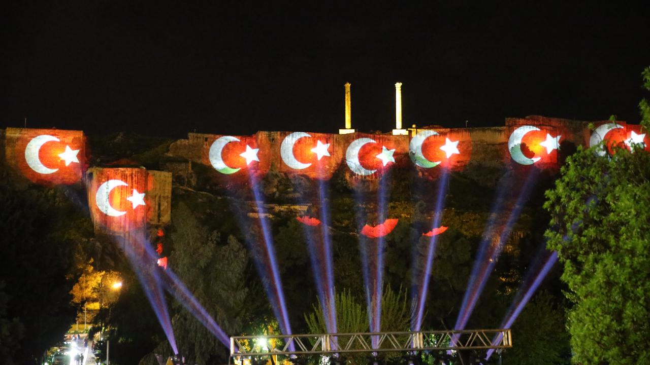 Şanlıurfa Büyükşehir Belediyesi tarafından düzenlenen "Urfa Kurtuluş Günleri" kapsamında tarihi Balıklıgöl Yerleşkesi`ndeki Urfa Kalesi`ne ışıklarla Türk bayrağı yansıtıldı.