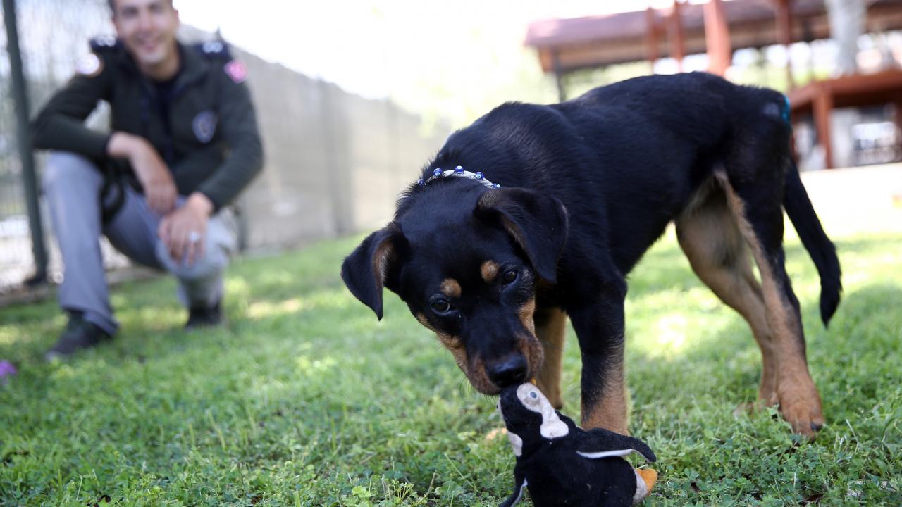 Mersin'de, sahibinin işkence edip damdan attığı ve ölmek üzereyken polis ekiplerince bulunup sahiplenilen ve `Şanslı` adı verilen köpek yavrusu, yaklaşık 2 aylık zorlu tedavi sürecinin ardından emniyetin güvenli ellerinde yeniden koşup oynamaya başladı.