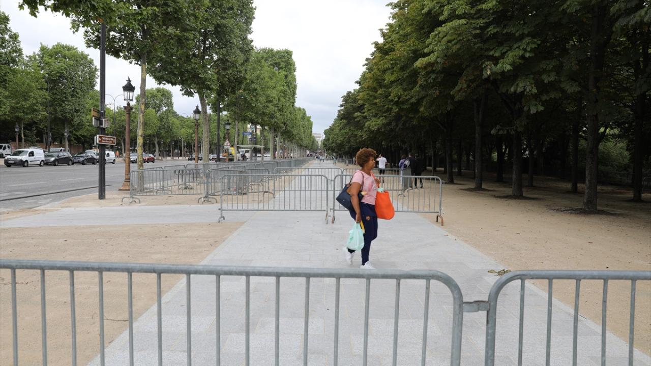 Fransa'nın Nanterre kentinde 27 Haziran'da 17 yaşındaki Nael M. isimli gencin polis kurşunuyla öldürülmesiyle ülke geneline sıçrayan şiddet eylemleri sonrası başkent Paris'in en işlek caddesi Şanzelize'de turistlerden çok polisin kaldırımlara yerleştirdiği demir bariyerler göze çarpıyor.