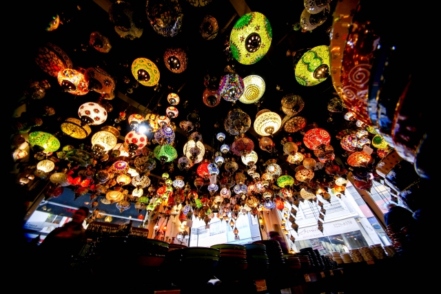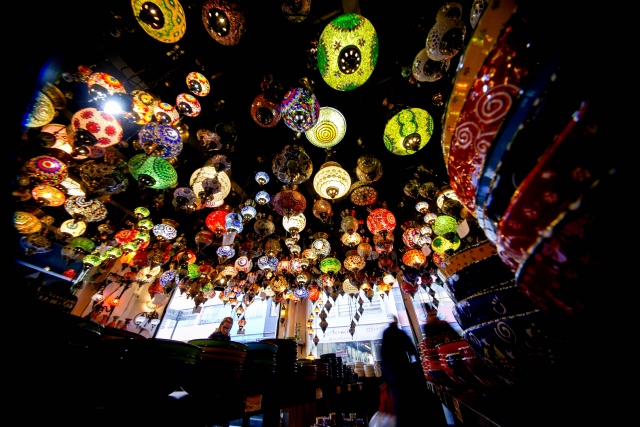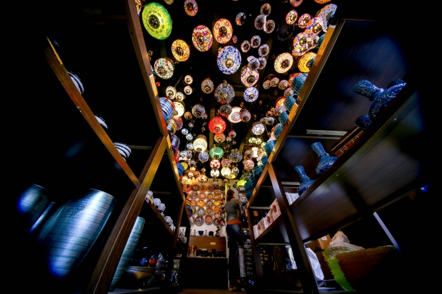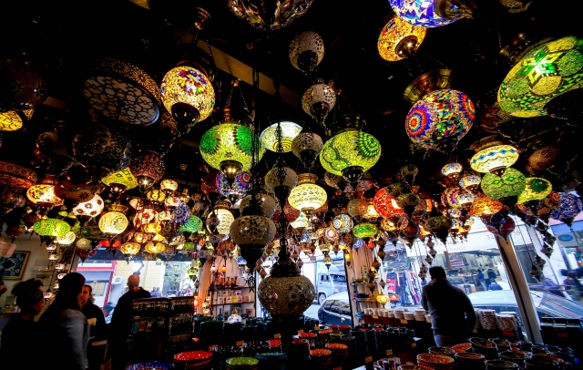 Brezilya'nın Sao Paulo kentindeki 25 Mart Caddesi'nde bulunan bir dükkanda geleneksel eski Türk lambaları sergileniyor.