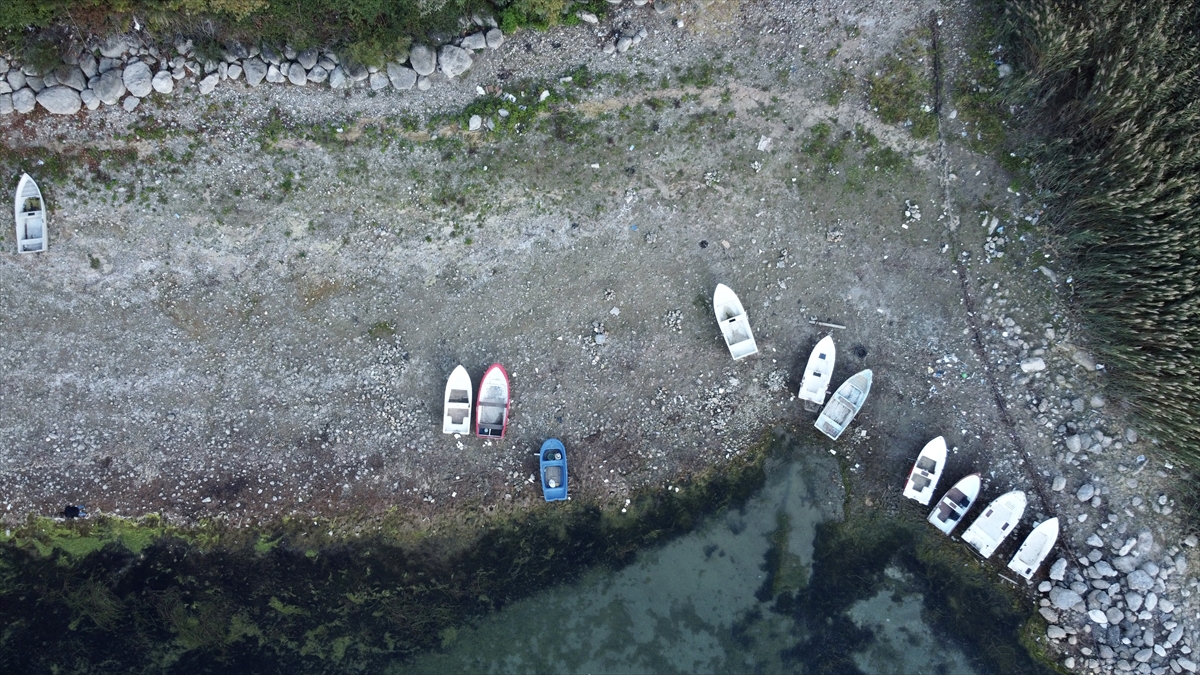 Sapanca ilçesine adını veren gölde yaşanan su kaybıyla iskelelerin büyük bölümü susuz kaldı, göldeki kayıklar tamamen karaya oturdu.