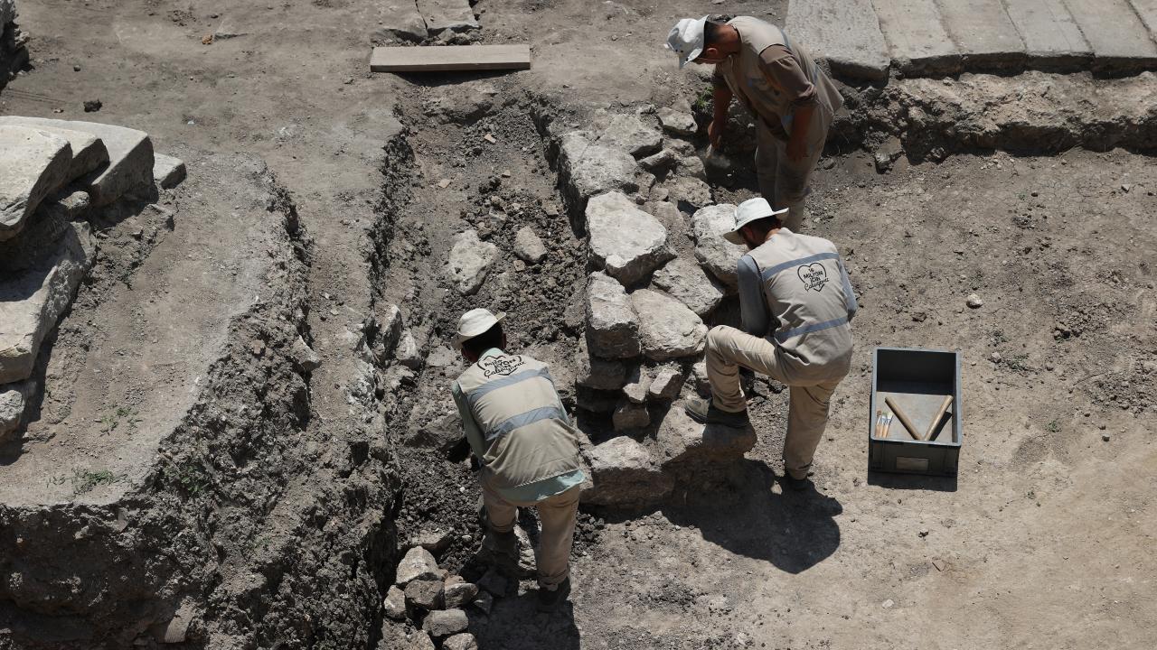 Saraçhane'deki kazı çalışmasında 3 mezar steli parçası bulundu