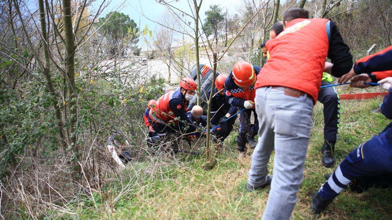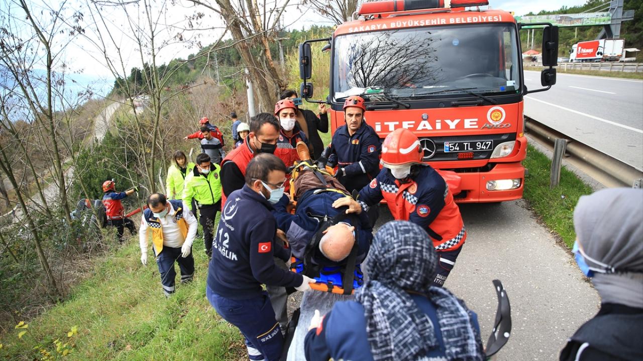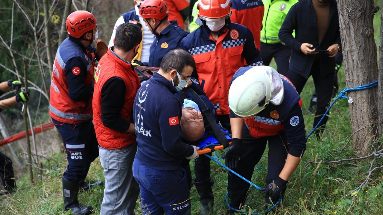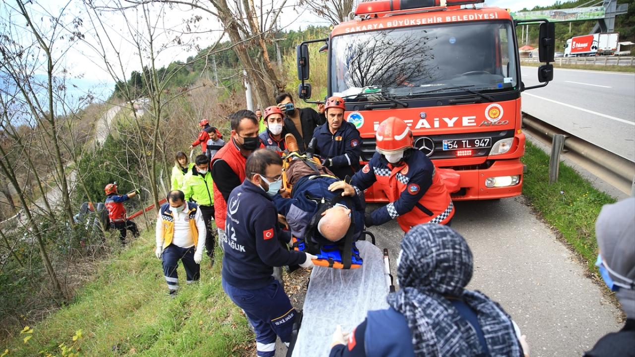 Sedyeye alınan yaralı, ip yardımıyla yukarı çıkarılarak ambulansla Sakarya Eğitim ve Araştırma Hastanesine kaldırıldı.