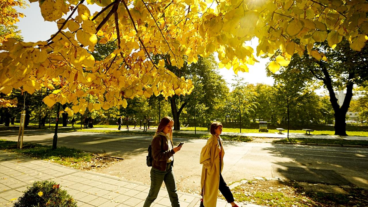 Saraybosna`nın merkezindeki "Vilsonovo" Yürüyüş Yolu, yaprakların sararıp dökülmesiyle adeta görsel şölen oluşturdu.