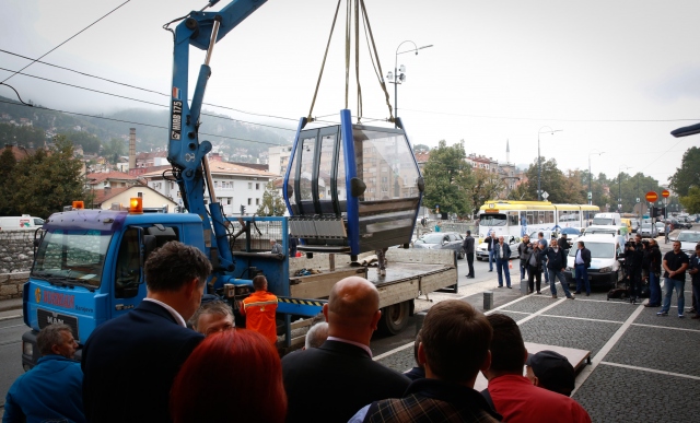 Saraybosna'da ilk kez 1959 yılında kullanılmaya başlanan ancak Bosna Savaşı sırasında tamamen zarar gören teleferik yeniden vatandaşların kullanımına sunulacak. Şehir merkezi ile Trebevic Dağı arasında hizmet verecek yeni teleferiğin "panoramik gondol" isimli ilk kabini, Vijecnica Kütüphanesi'nin önüne yerleştirildi.