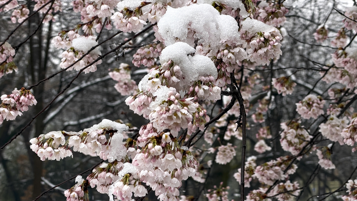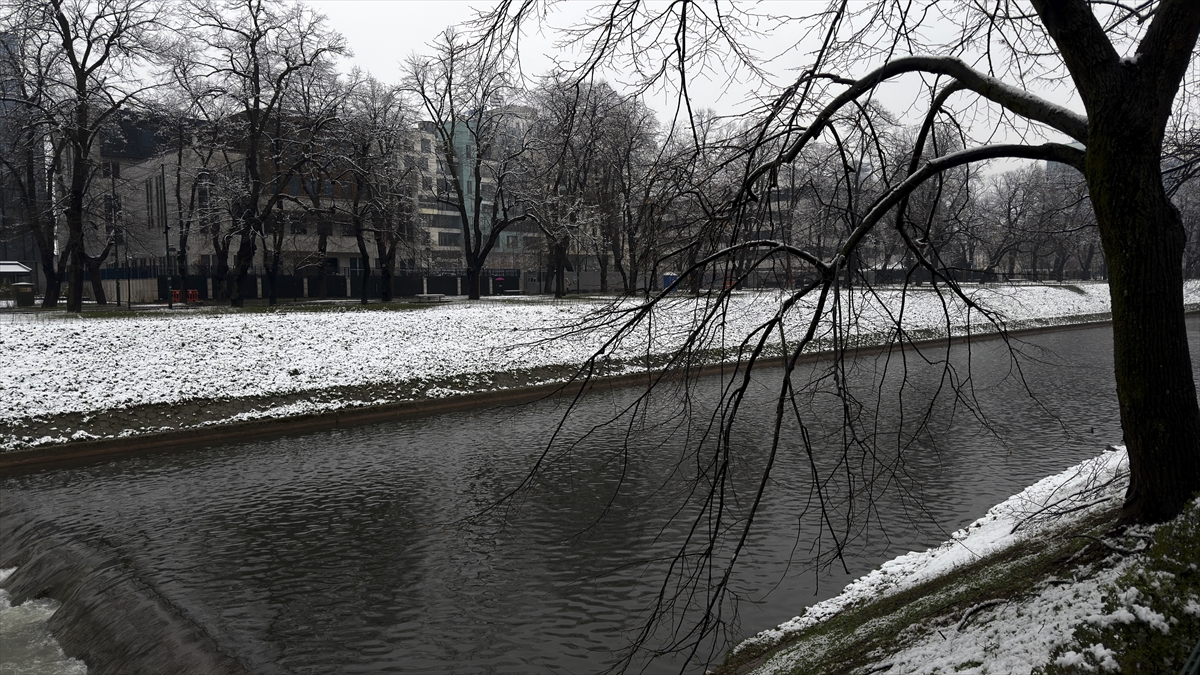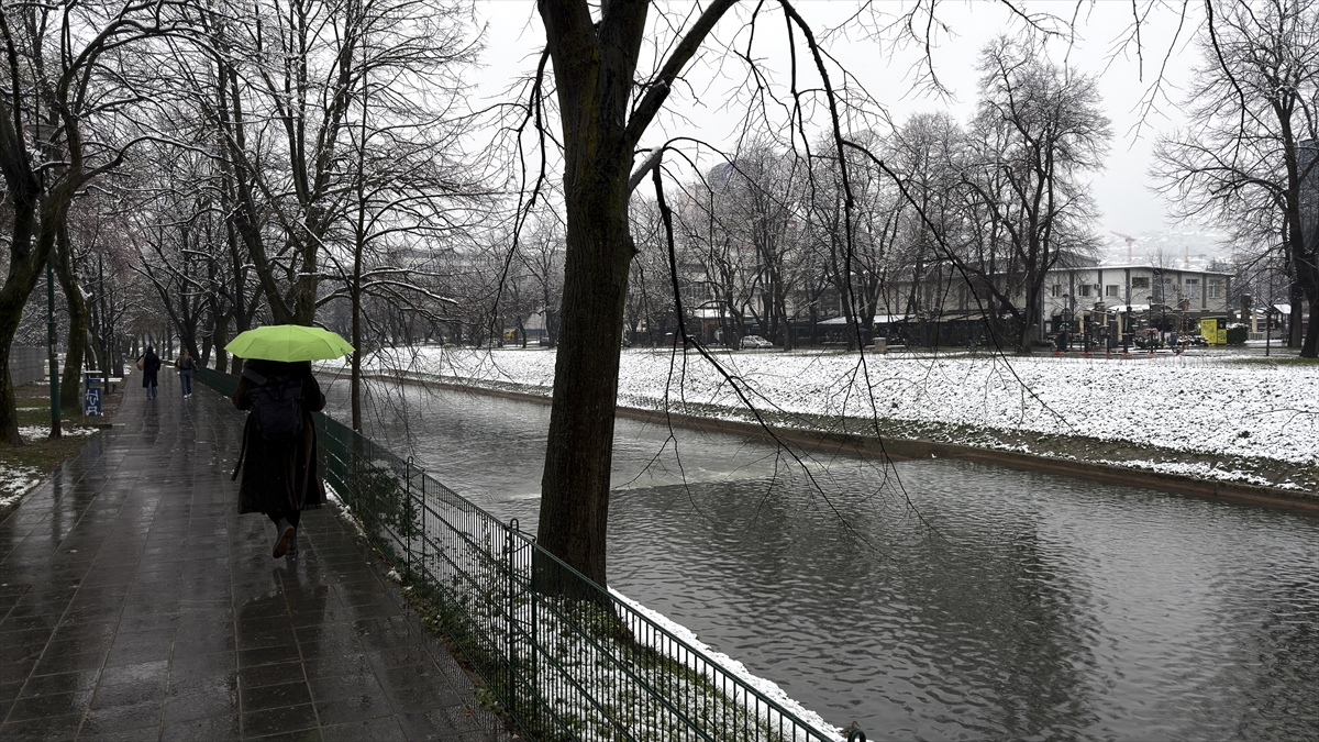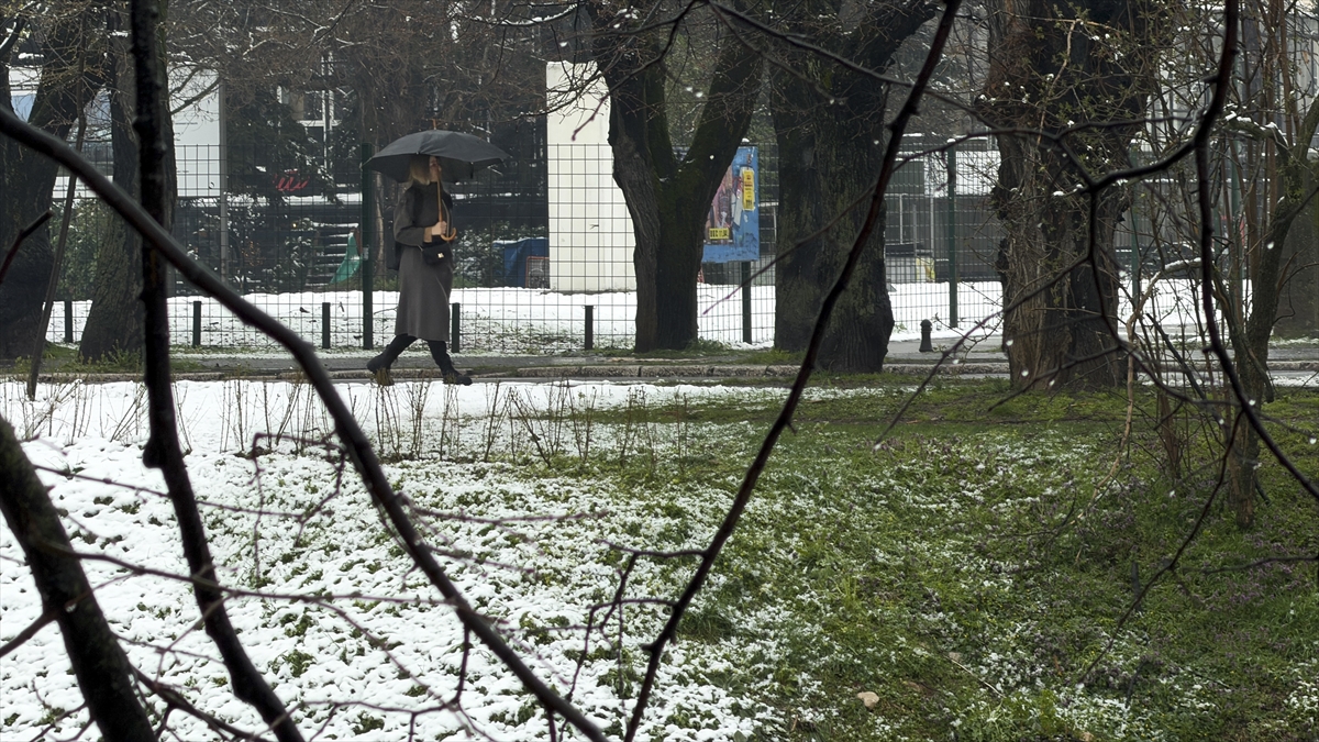 Bosna Hersek'in başkenti Saraybosna’da etkili olan beklenmedik kar yağışı, yeni çiçek açan ağaçların dallarını ve kentin yeşil alanlarını beyaz örtüyle kapladı.