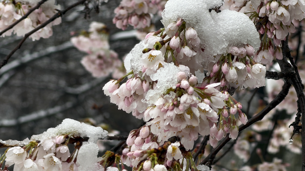 Saraybosna’da beklenmedik kar yağışı çiçek açan ağaçları beyaza bürüdü.