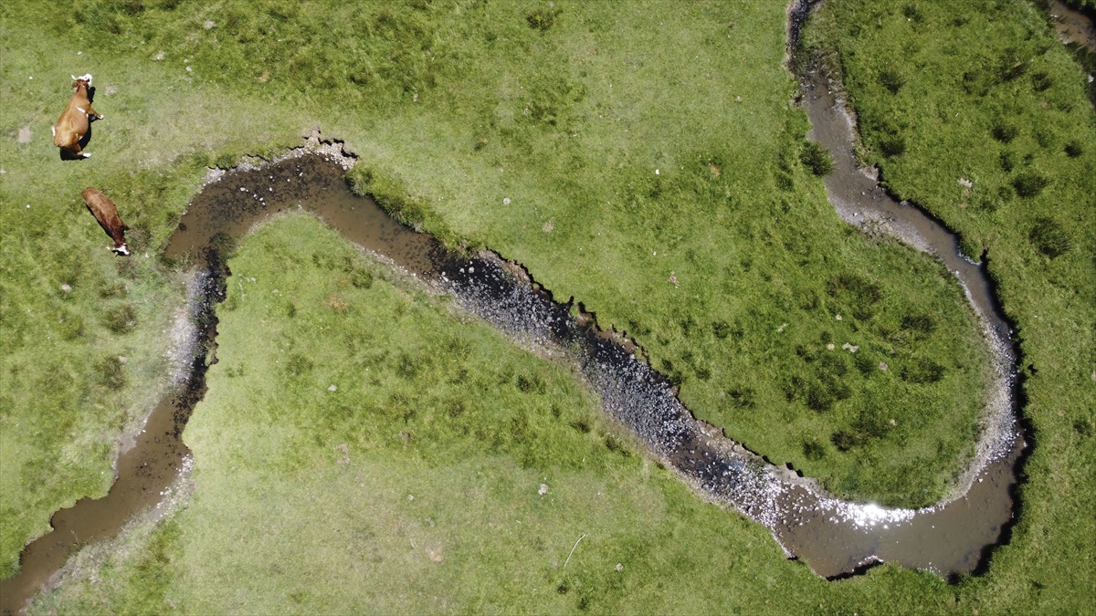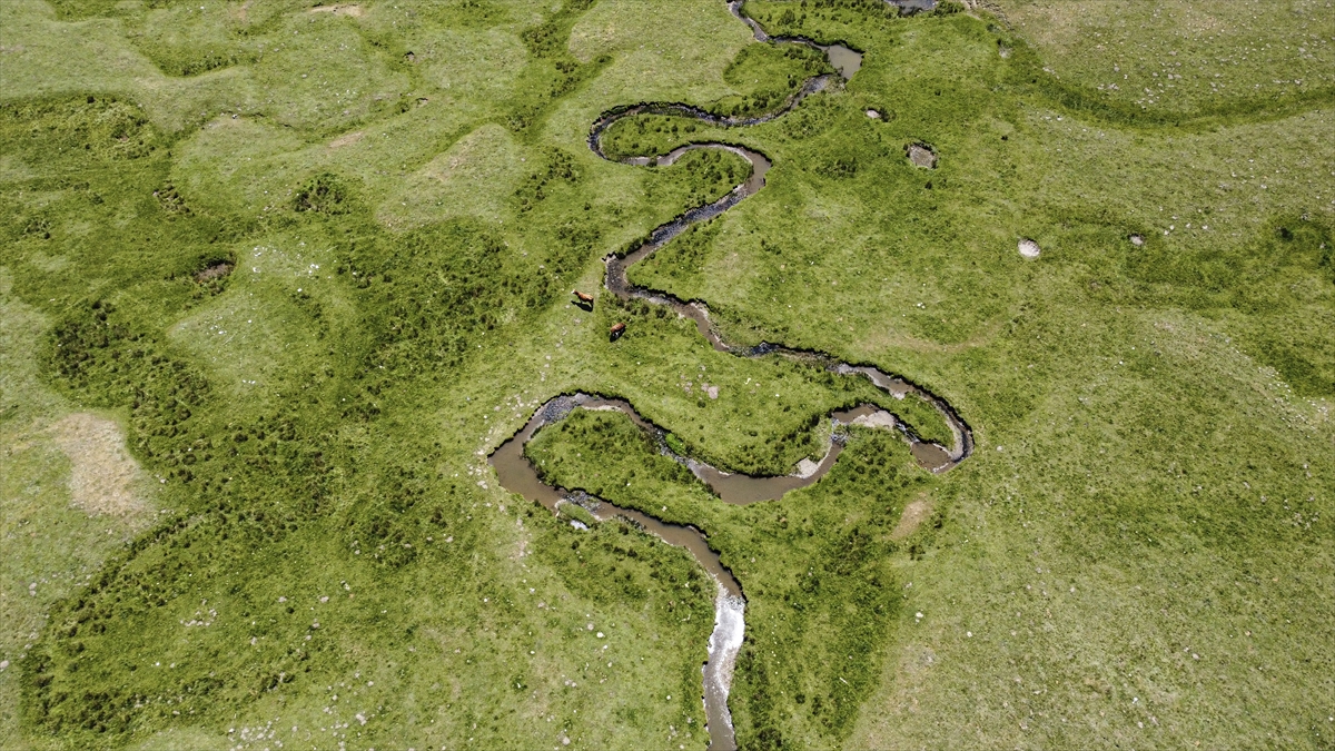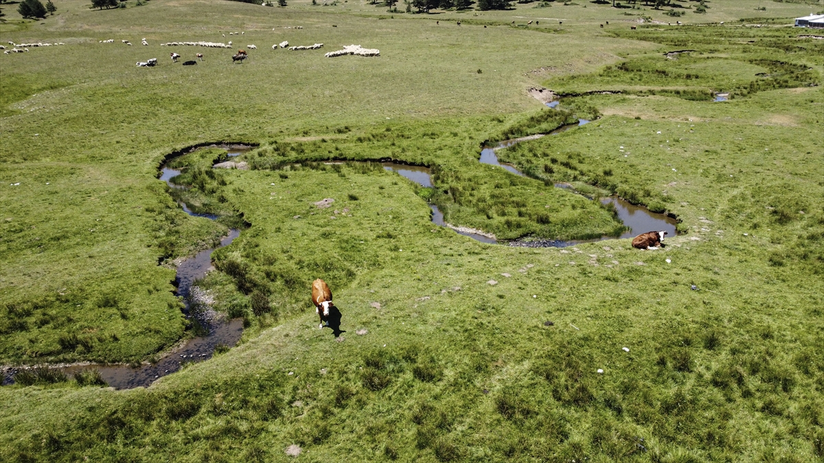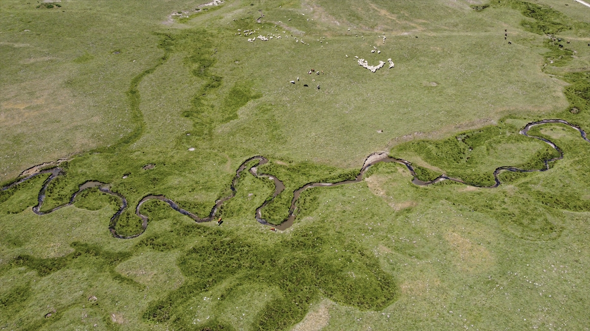Bolu'dan yaklaşık 30 km uzaklıktaki Aladağlar bölgesinde Kartalkaya Kayak Merkezi yolu üzerinde bulunan Saraycık Yaylası ve Sarıalan Yaylası menderesleri dronla görüntülendi.