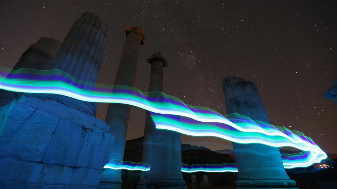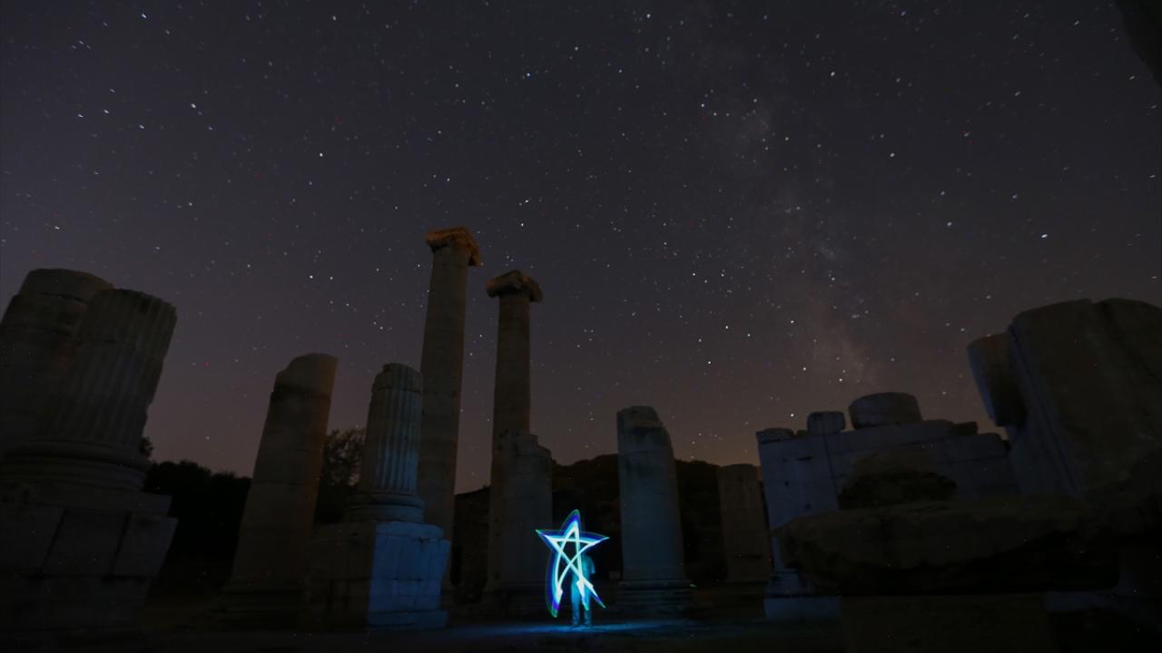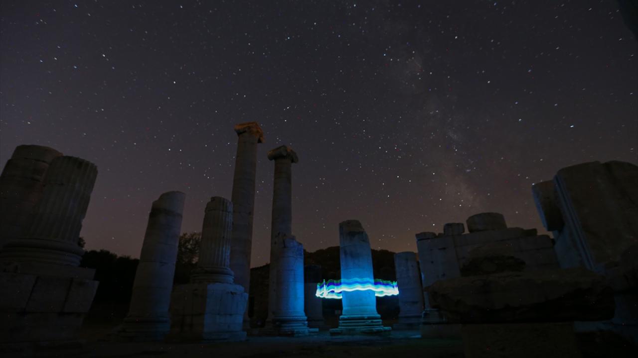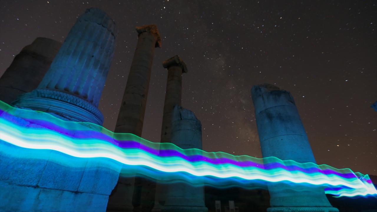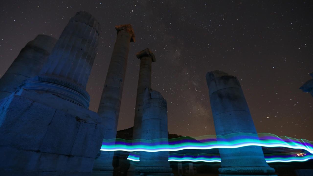 Kuruluşu milattan önce 1200'lü yıllara dayanan ve tarihte ilk madeni parayı basan ve Lidya Krallığı'nın başkenti Sardes Antik Kenti'ndeki dünyanın en görkemli tapınaklarından olan Artemis Tapınağı'nda samanyolu galaksisi, uzun pozlama tekniğiyle görüntülendi.