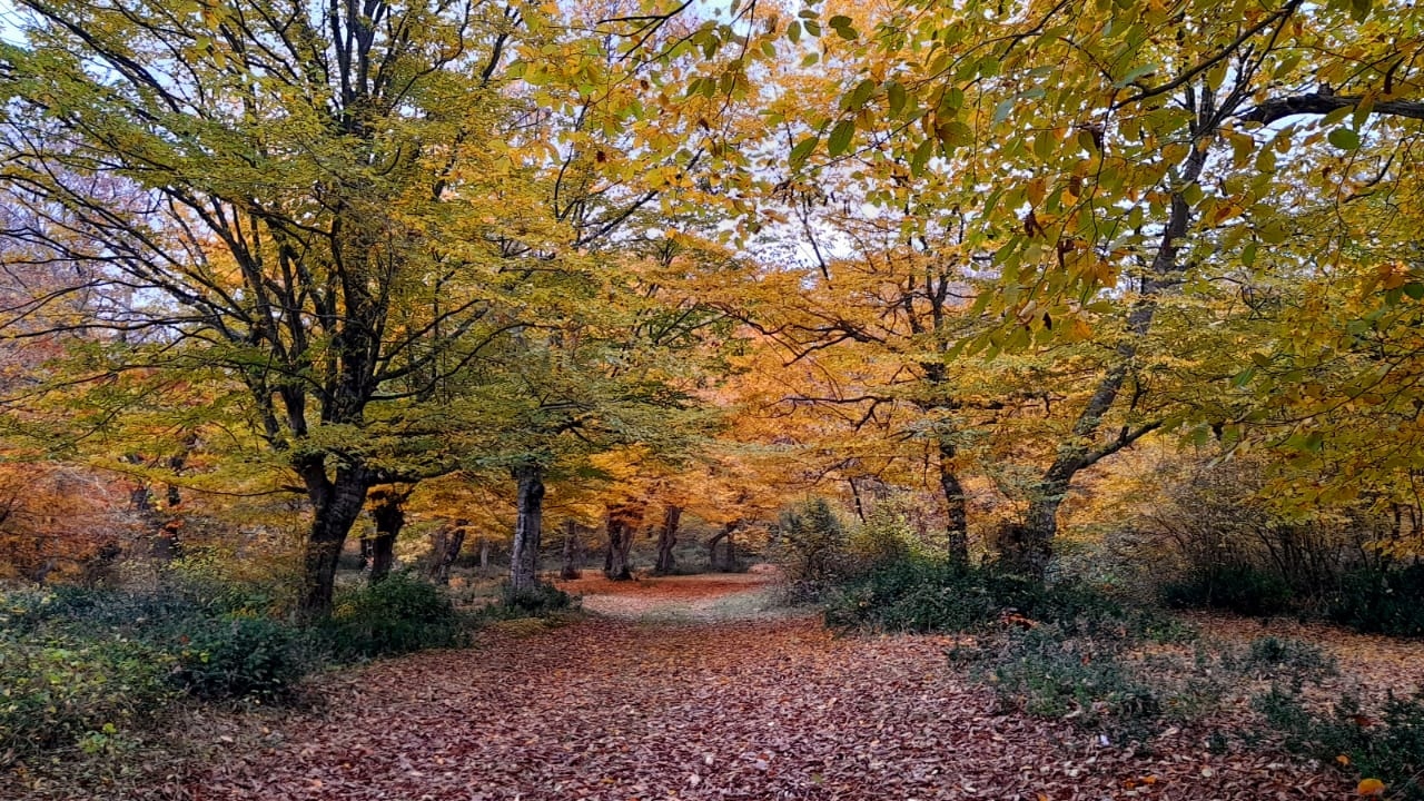 Sarı ve turuncu renklerine bürünen Abalı köyü