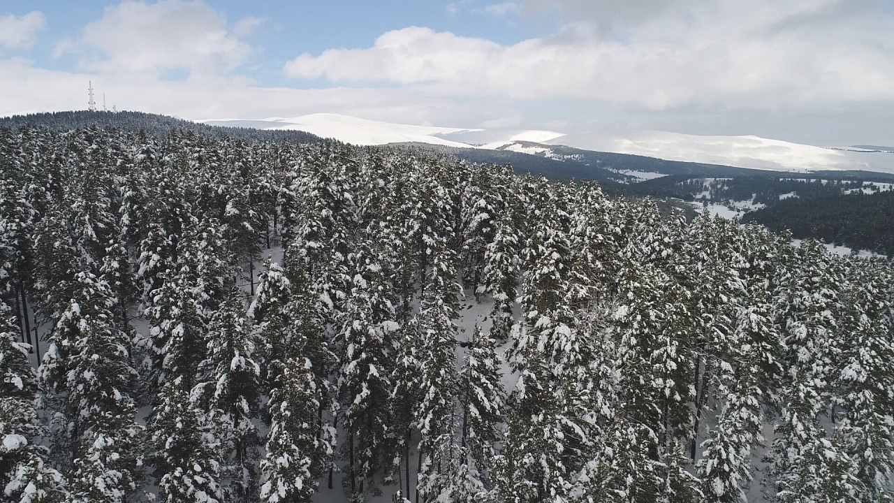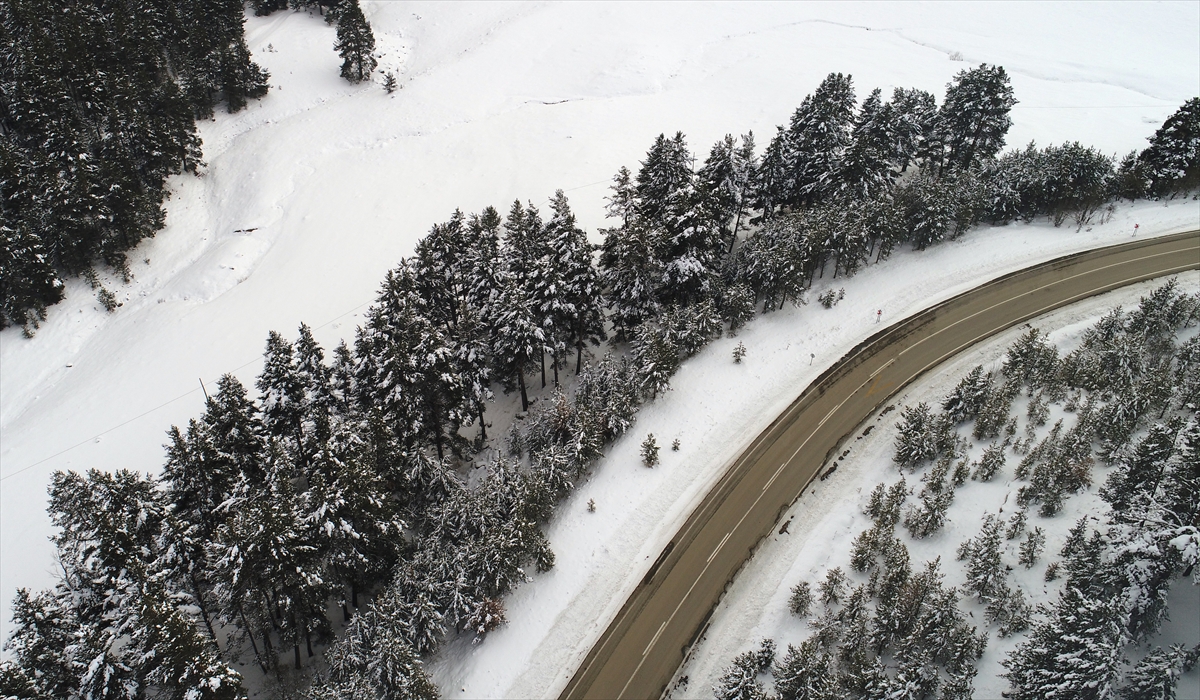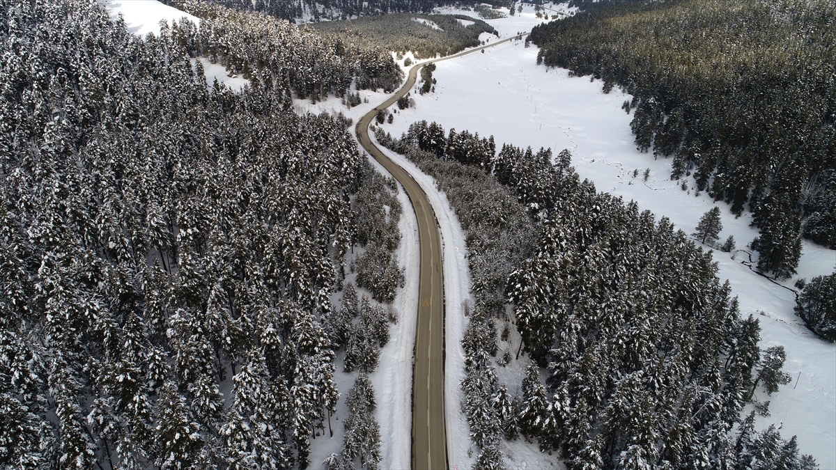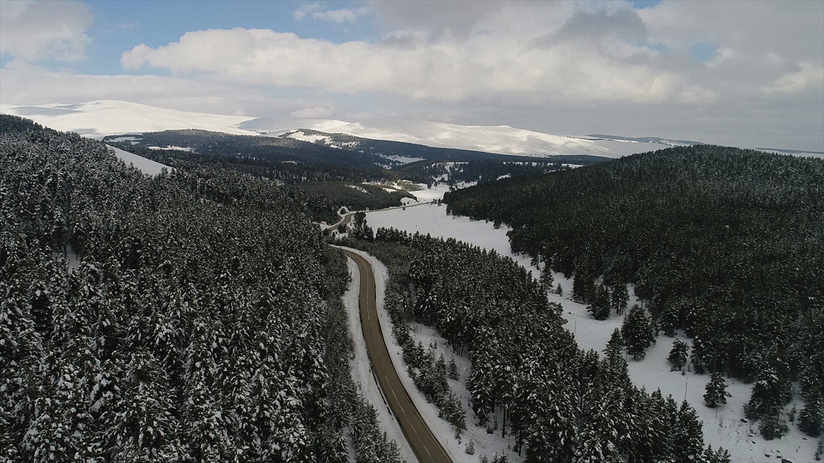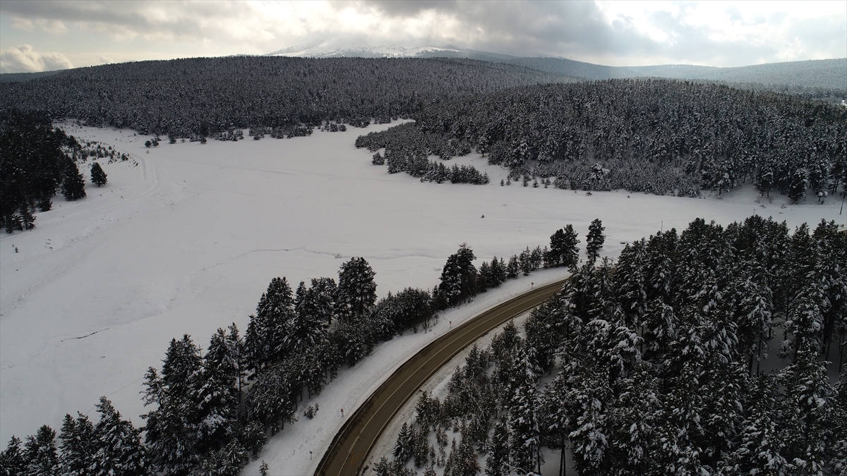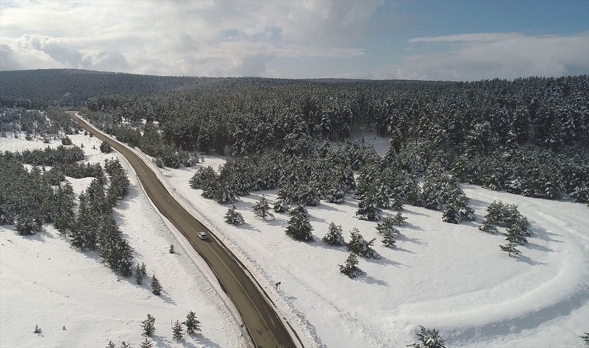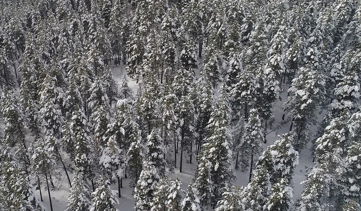 Türkiye'nin en yüksek yerleşim birimlerinden olan Kars'ın Sarıkamış ilçesinde kar nedeniyle sarıçam ormanları farklı bir güzelliğe büründü.