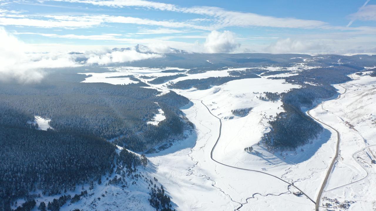 Sarıkamış`ı çevreleyen 2 bin 600 rakımlı Soğanlı Dağları ile Kumrutepe ve Çataldere mevkiindeki ormanlar ile Keklik Deresi Vadisi dronla görüntülendi.