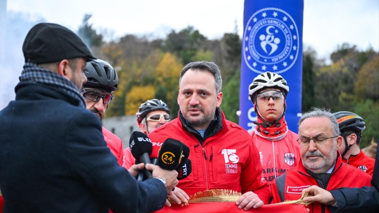 "İnşallah arkadaşlarımız bu güzergahı en güzel şekilde tamamlayacaklar. Geçtikleri illerdeki protokolün kendilerini karşılamaları ve yolcu etmeleriyle devam edecek. Biz de kendilerini orada karşılayacağız. Kendilerini tebrik edeceğiz. Şehitlikle, gazilikle, vatan ve bayrakla alakalı nerede hangi etkinlik varsa sivil toplum kuruluşlarının ve devletimizin düzenlediği bu programlara katılmak suretiyle hem 15 Temmuz`daki şehitlerimizi hatırlıyoruz hem de bu toprakları bize vatan kılarken şehit olanları hayırla yad ediyoruz. Ecdat bize canları pahasına bu toprakları emanet bıraktı. Yeri zamanı geldiğinde biz de bu ruhla bu anlamda vatanımıza, toprağımıza, bayrağımıza sahip çıkacağız. 15 Temmuz`da 253 şehit vermiştik, bunları 8`i 18 yaş altındaki evlatlarımızdı. Tüm şehitlerimizi bir kez daha rahmetle anıyoruz."