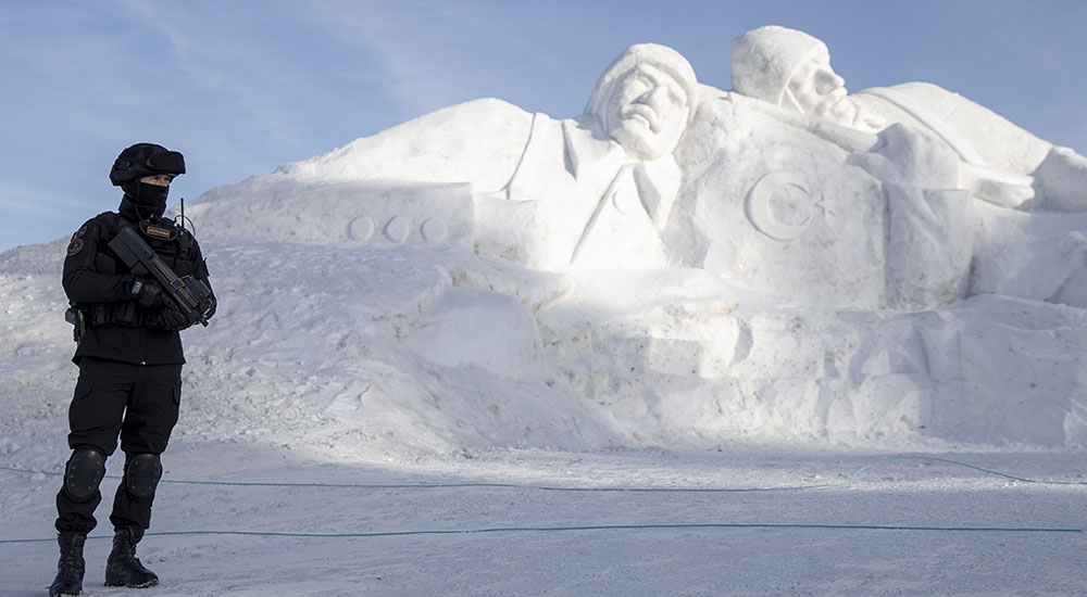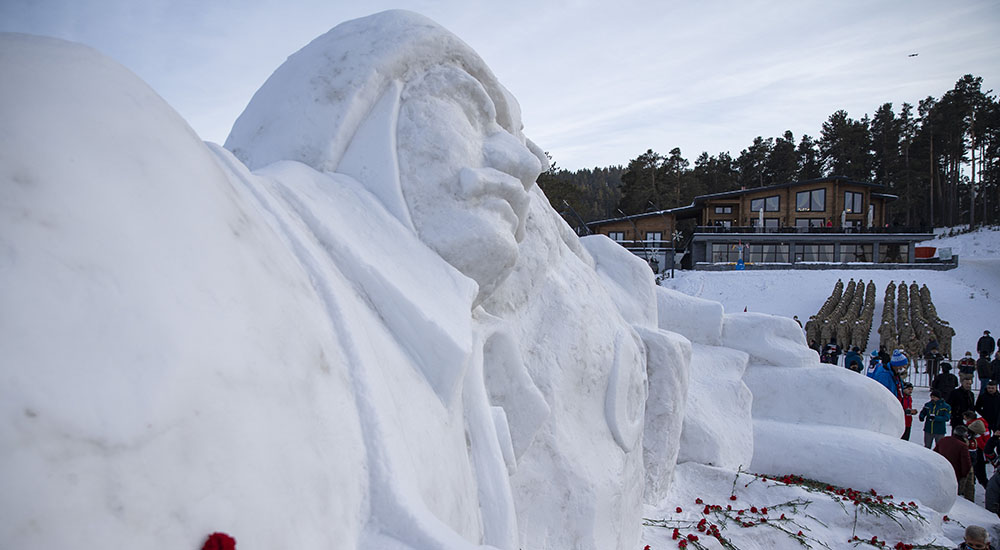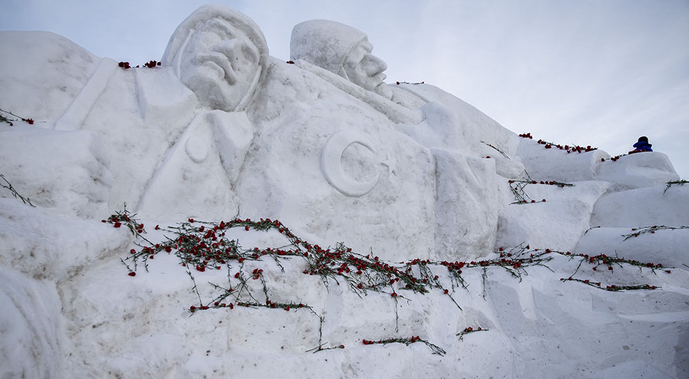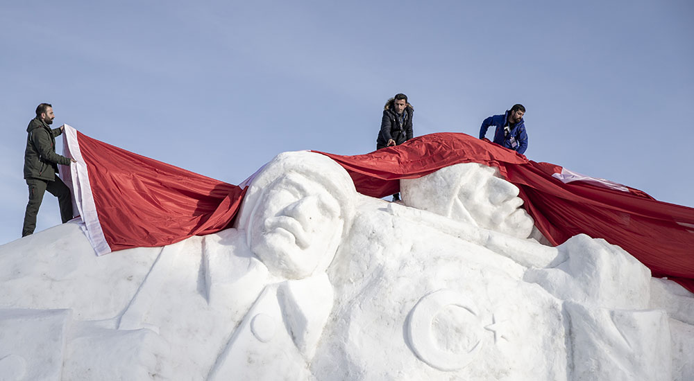 Cıbıltepe Kayak Merkezi`nde yapılan heykel için yaklaşık 200 kamyon kar taşındı.
