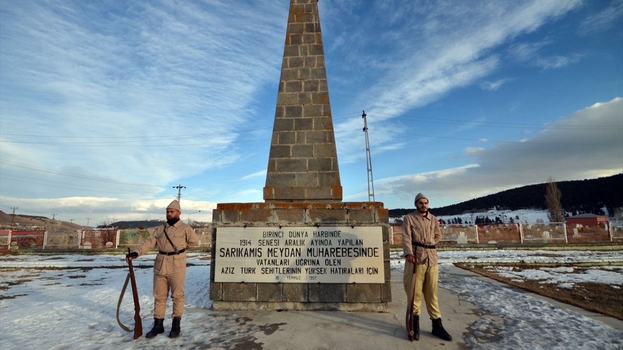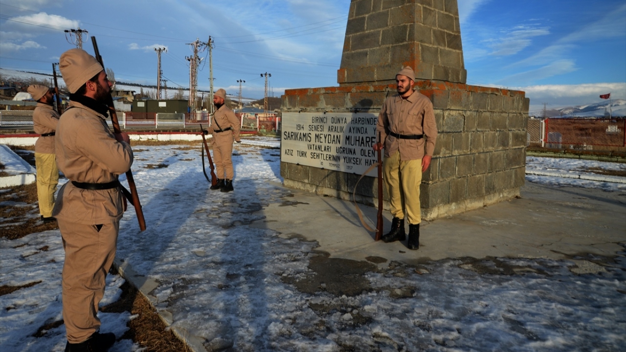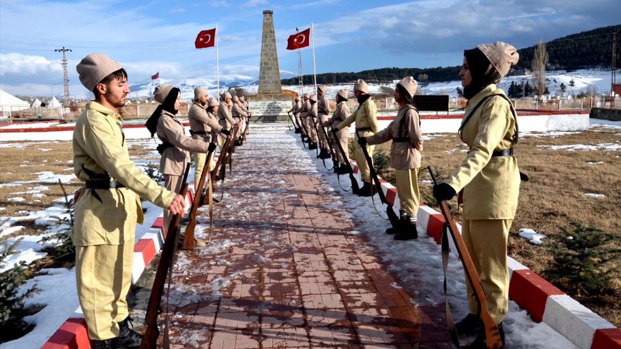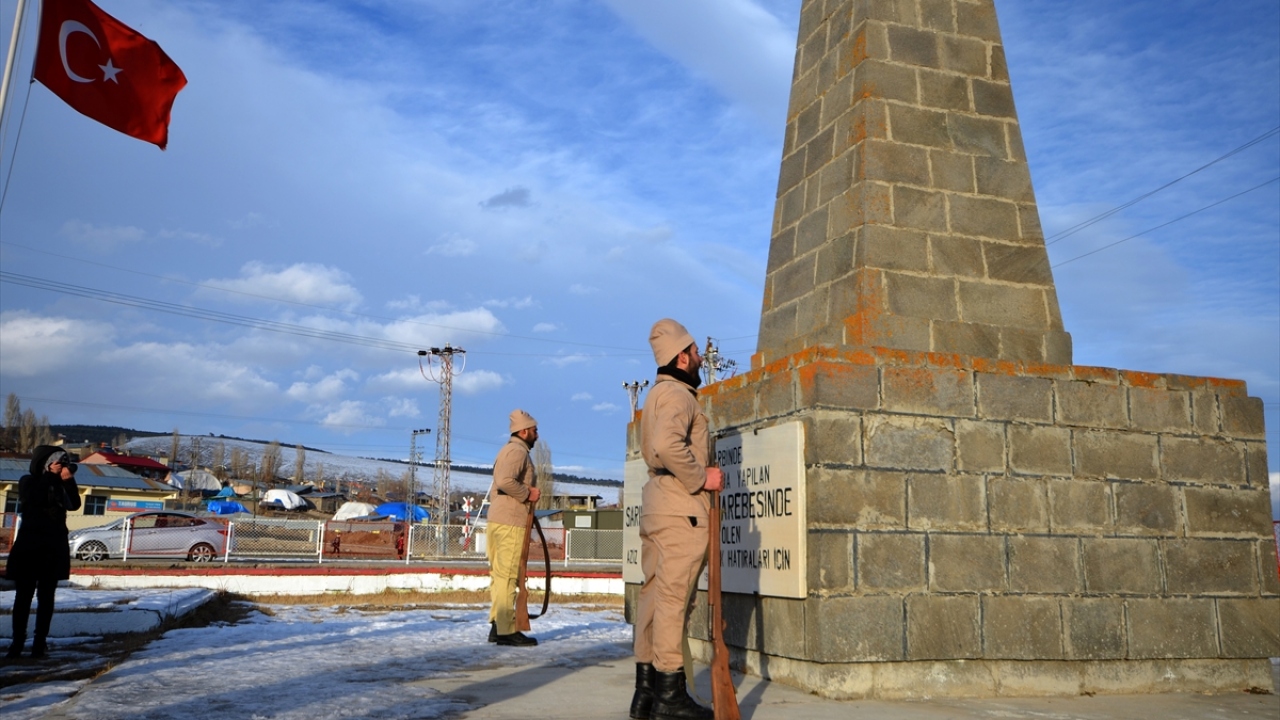 Sarıkamış Harekatı'nın 105. yılında, üniversite öğrencileri sıfırın altında 10 derecede temsili asker kıyafetleri giyerek saygı nöbeti tuttu.