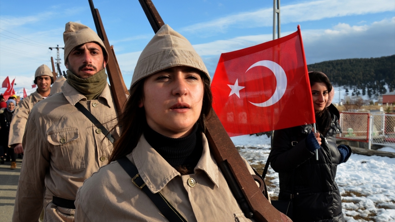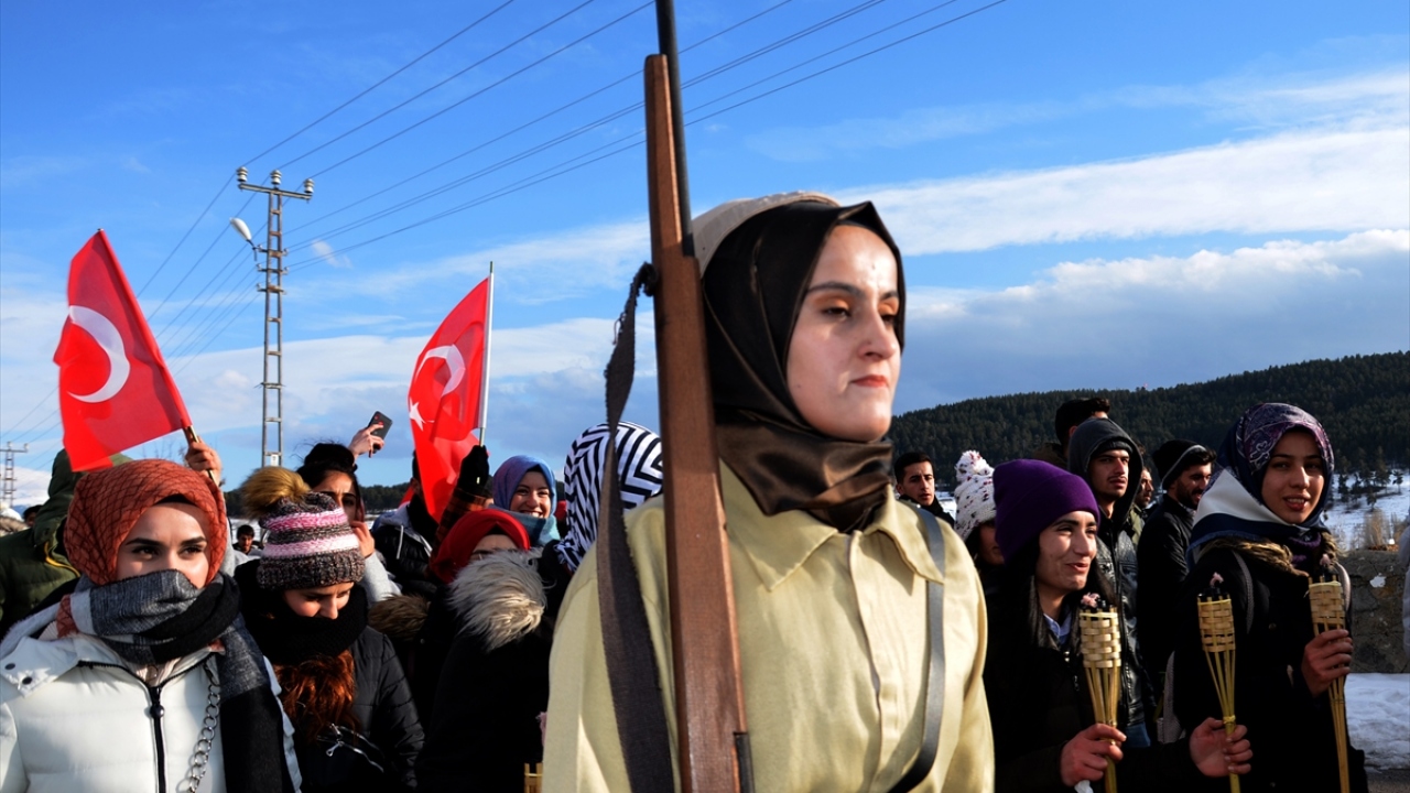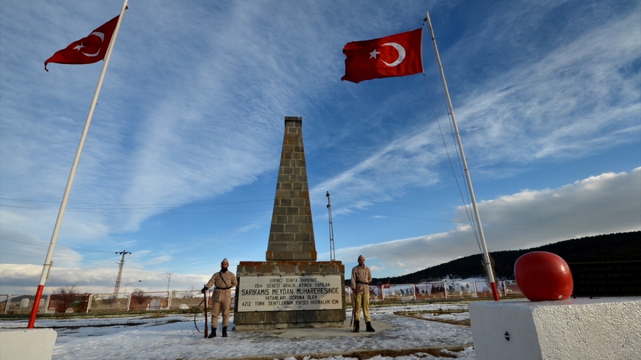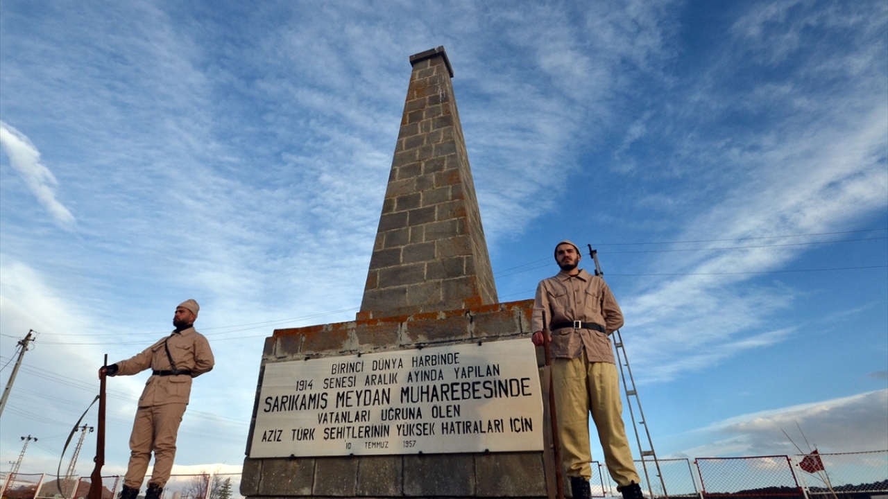 Sarıkamış Harekatı'nın 105. yılında, üniversite öğrencileri sıfırın altında 10 derecede temsili asker kıyafetleri giyerek saygı nöbeti tuttu.