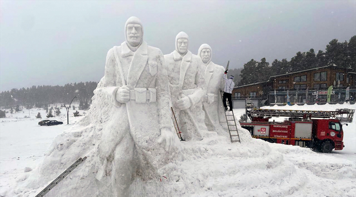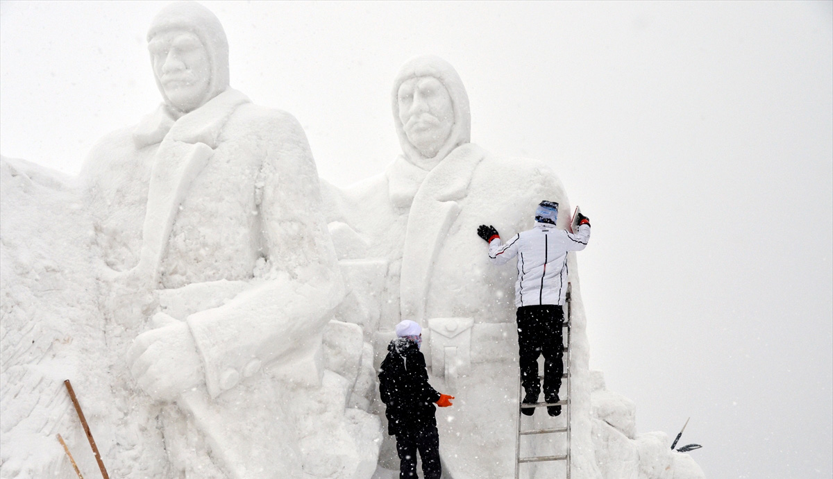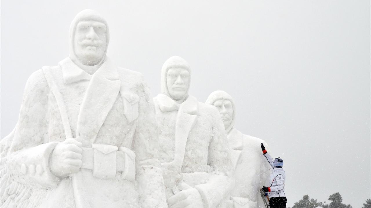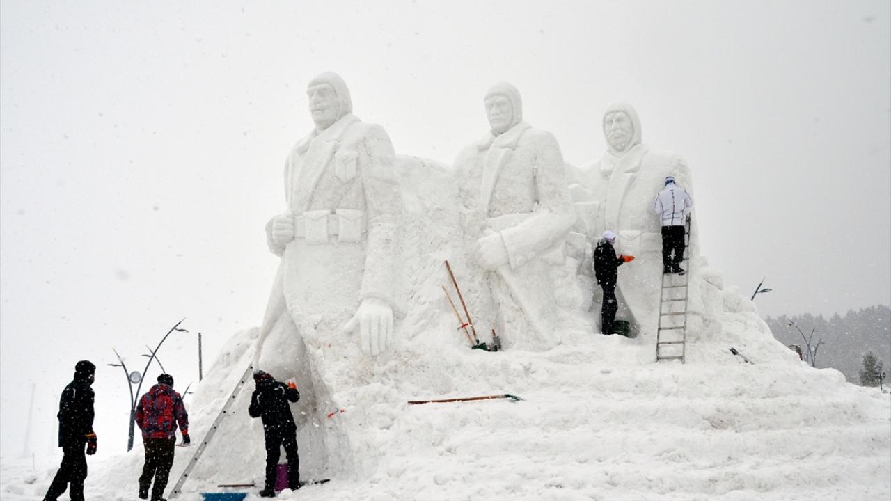 Kars'ın Sarıkamış ilçesinde, Sarıkamış Harekatı'nın 109. yılı anma etkinlikleri kapsamında sergilenecek kardan heykellerin yapımı iki bölgede tamamlandı.