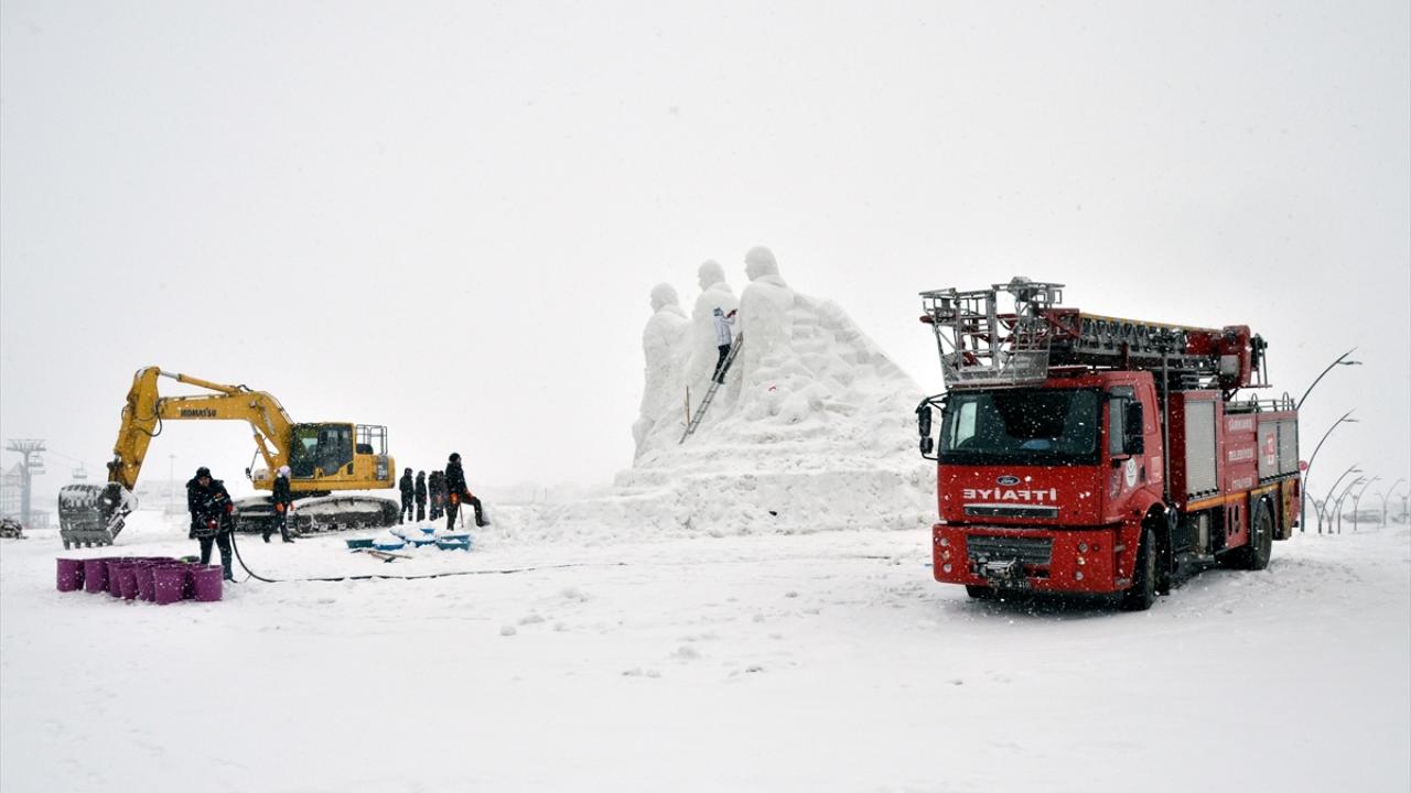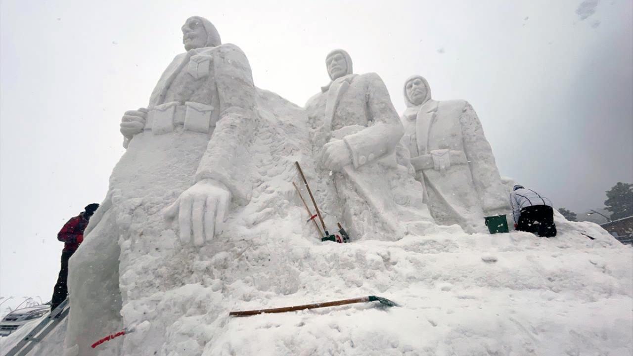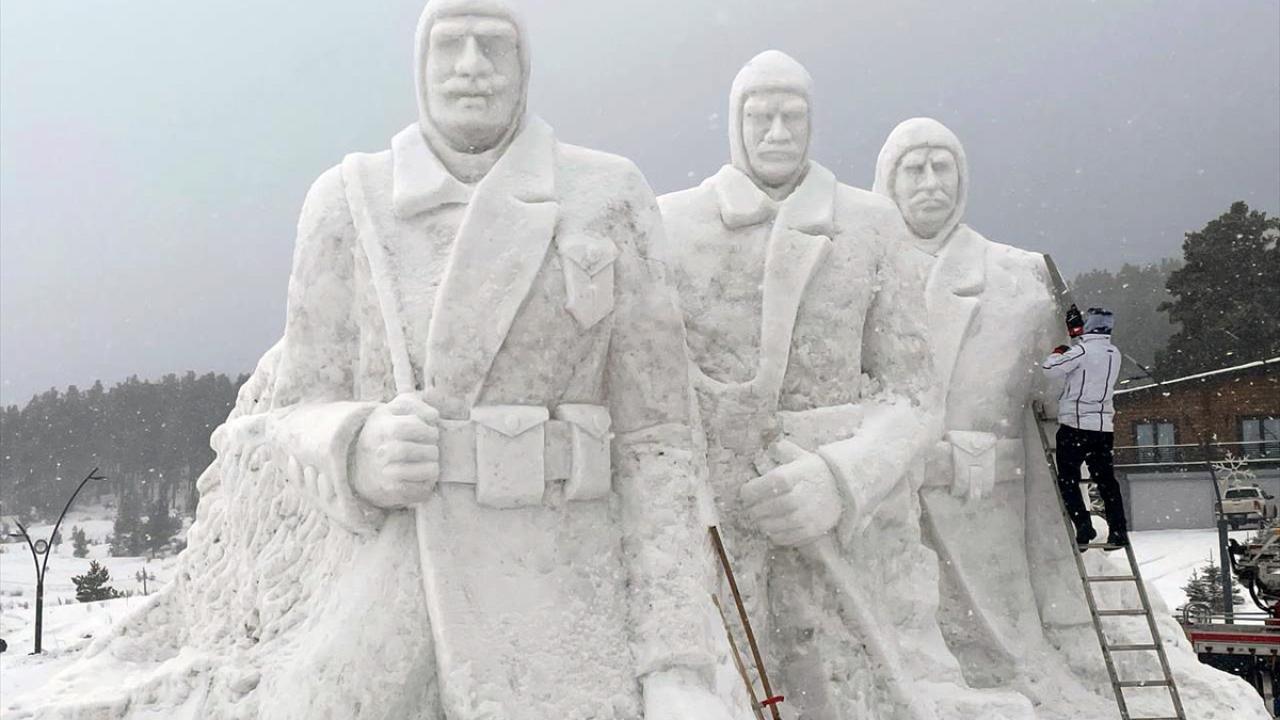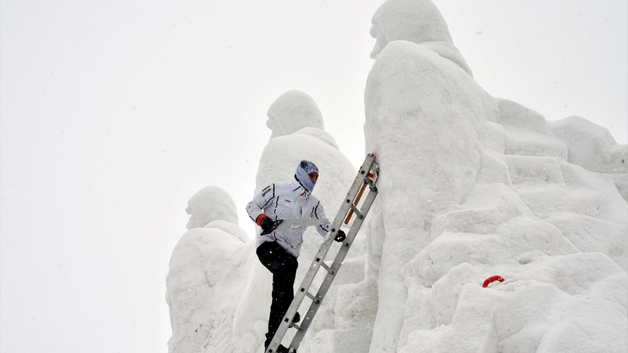 Kars'ın Sarıkamış ilçesinde, Sarıkamış Harekatı'nın 109. yılı anma etkinlikleri kapsamında sergilenecek kardan heykellerin yapımı iki bölgede tamamlandı.