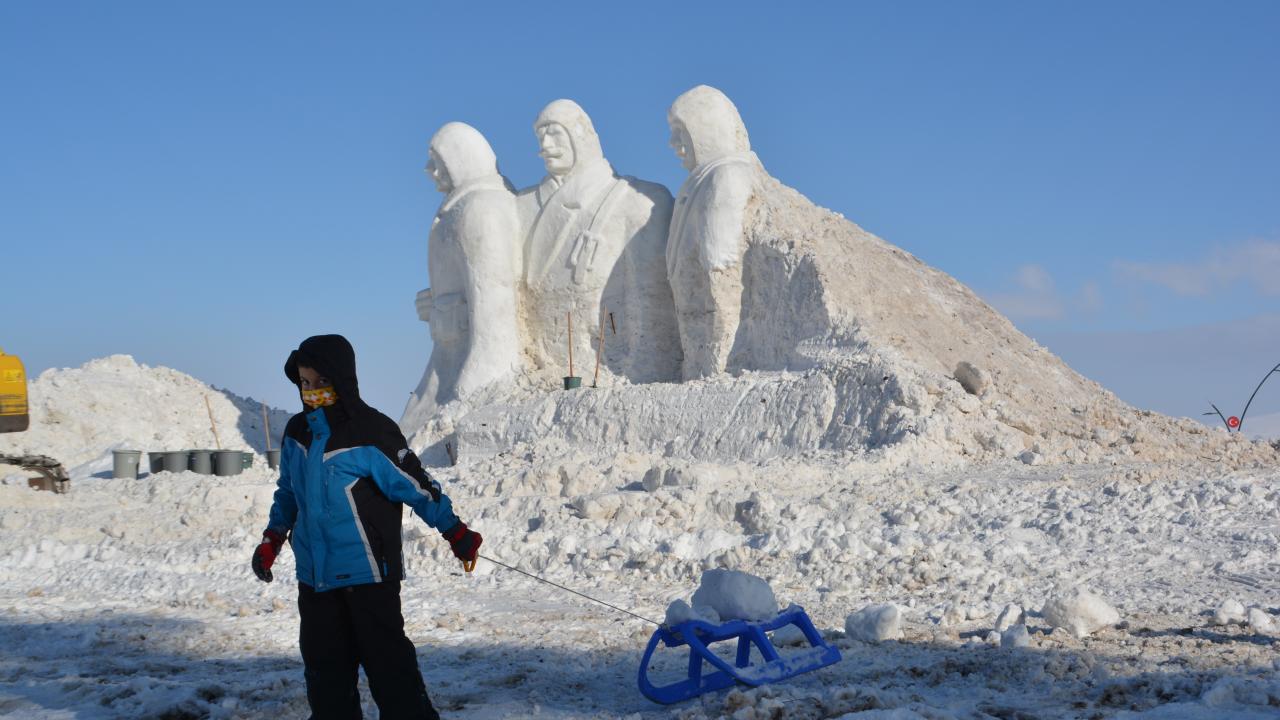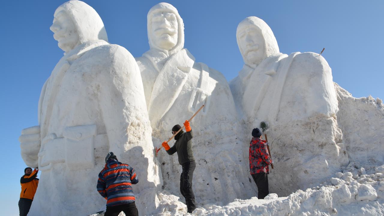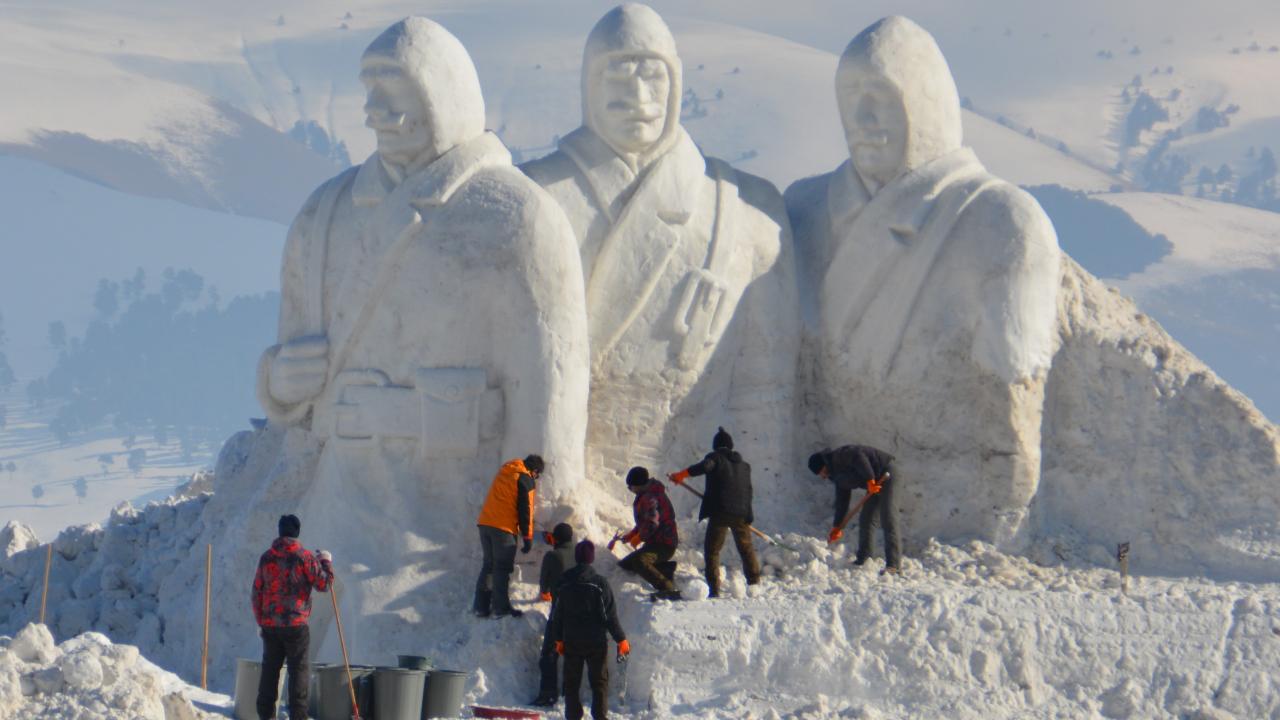 8-9 Ocak'ta gerçekleştirilecek Sarıkamış Harekatı'nın 106. yılı anma etkinlikleri için hazırlıklar devam ediyor. Donarak şehit olan Mehmetçiklerin anısına kardan heykeller yapılıyor.