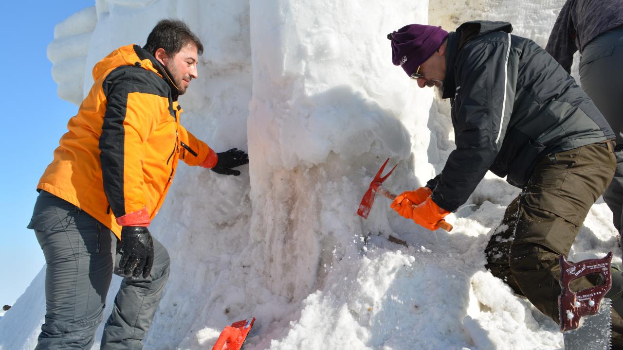 Kars Valiliği ve Sarıkamış Kaymakamlığı öncülüğünde Kafkas Üniversitesi (KAÜ) Öğretim Görevlisi Muhammet Hanifi Zengin`in koordinasyonunda başlanan kardan şehit heykelleri yapımı için bir grup öğretim görevlisi ve öğrenciler çalışma yürütüyor.